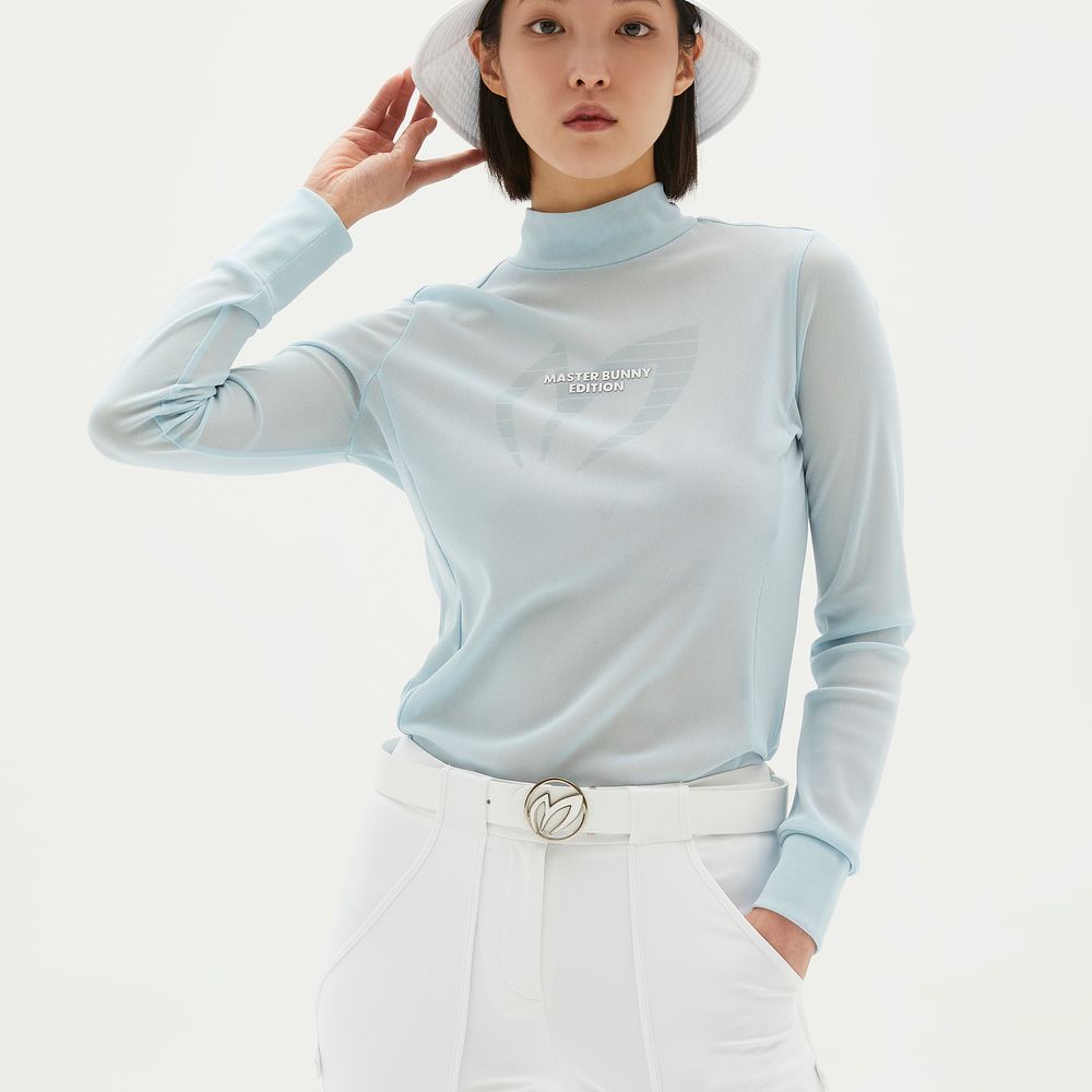 여성 로고 모크넥 메쉬 긴팔 티셔츠
