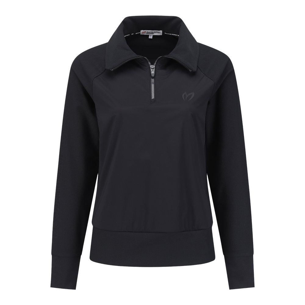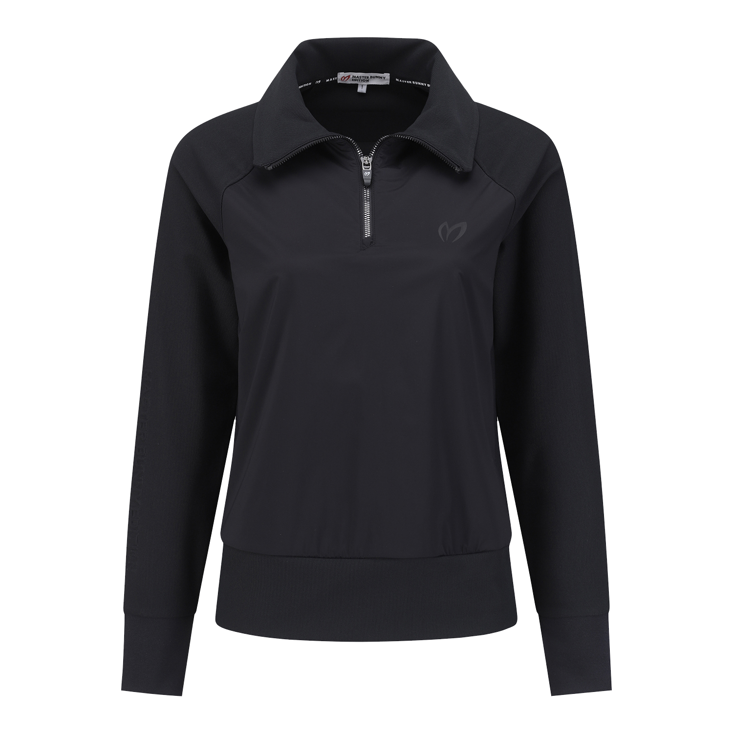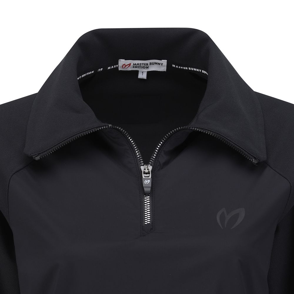 여성 심볼 우븐 믹스 하프 집업 티셔츠