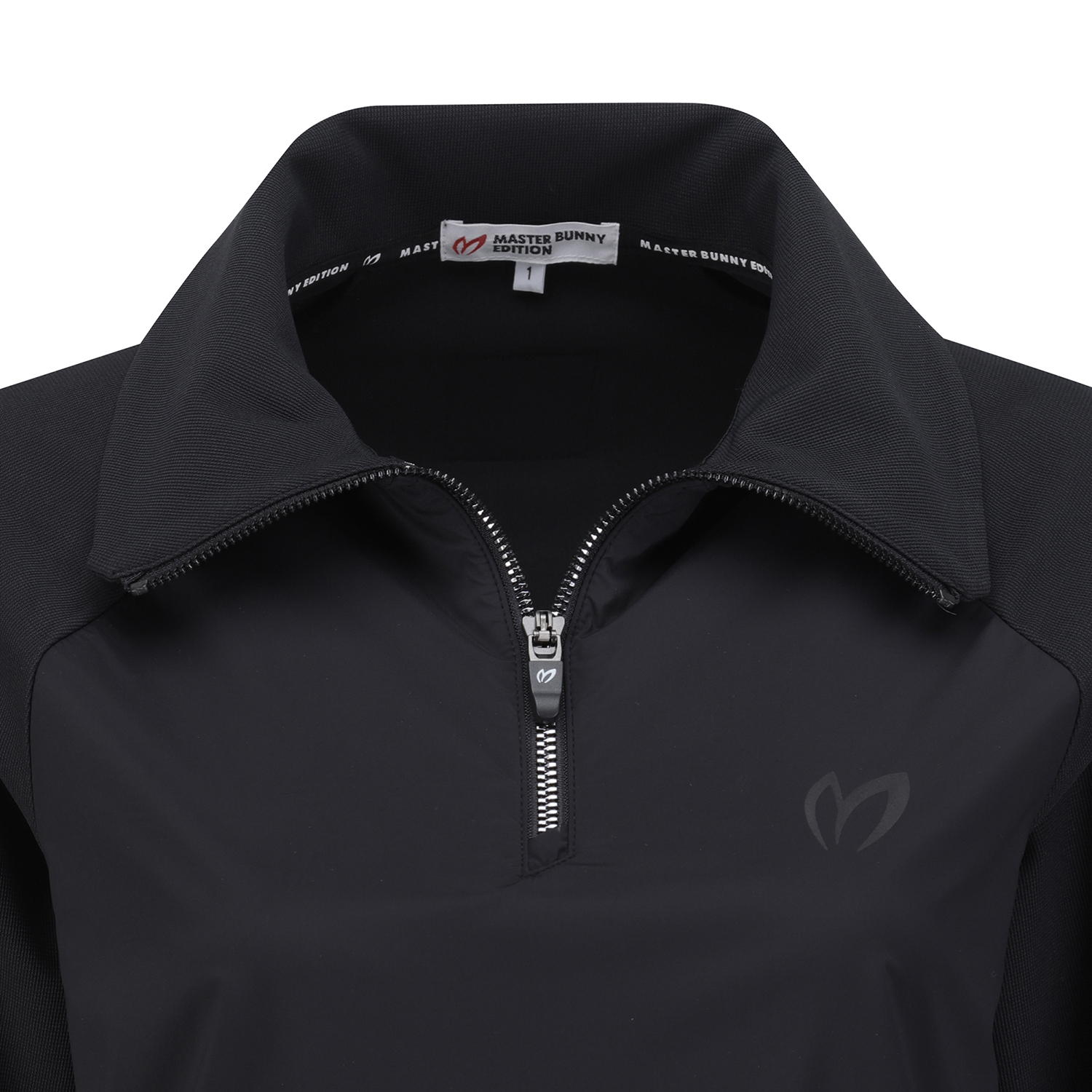 액티브한 느낌의 우븐 소재가 앞판에 덧대어진, 캐주얼한 무드의 오버핏 와이드 카라 티셔츠.반짝이는 메탈룩스 지퍼로 고급스러움을 줌과 동시에 다양한 형태의 네크라인 연출 가능.데일리 및 퍼포먼스용으로도 잘 어우러지는 조직감이 포인트인 일본수입 소재