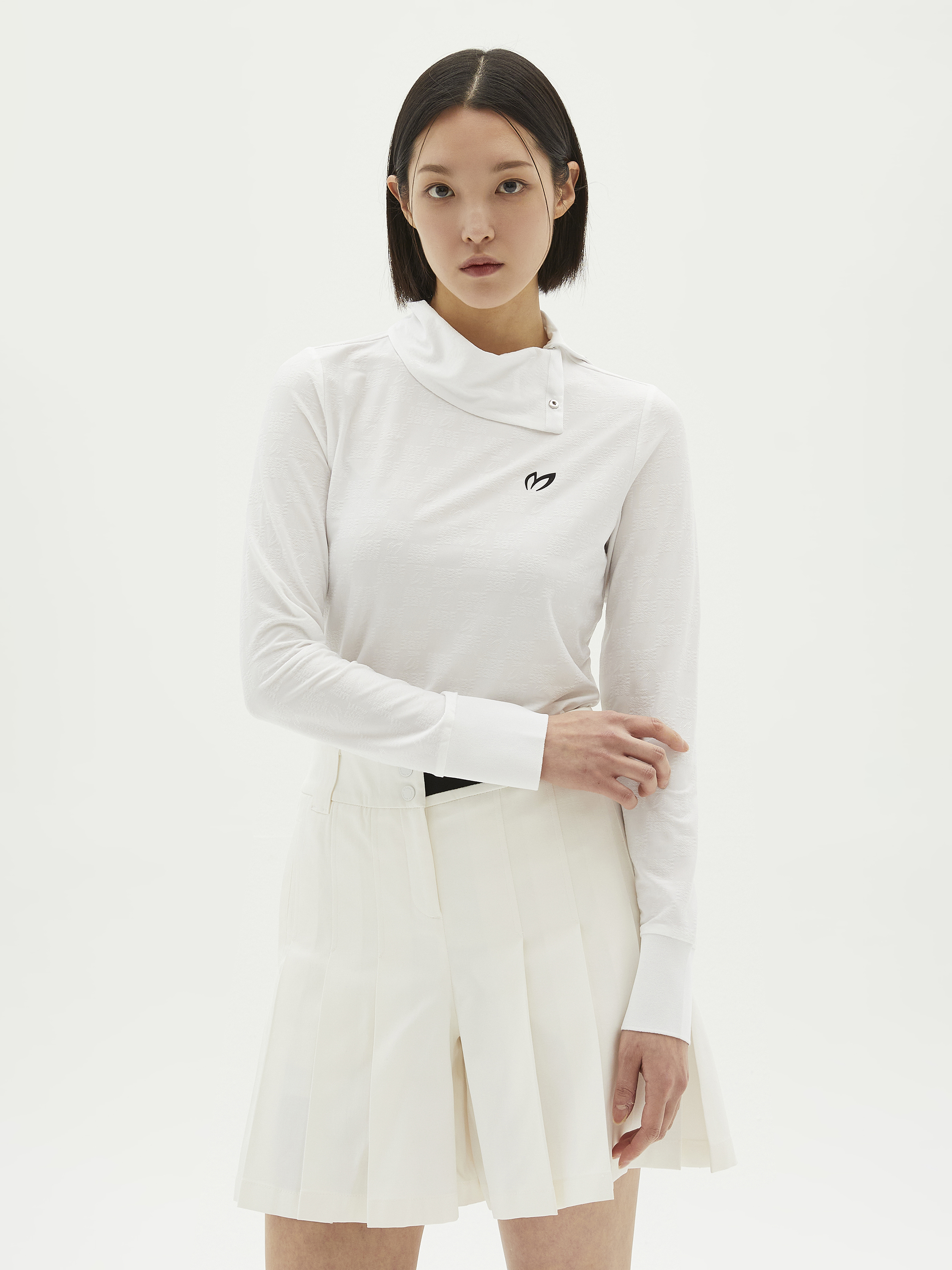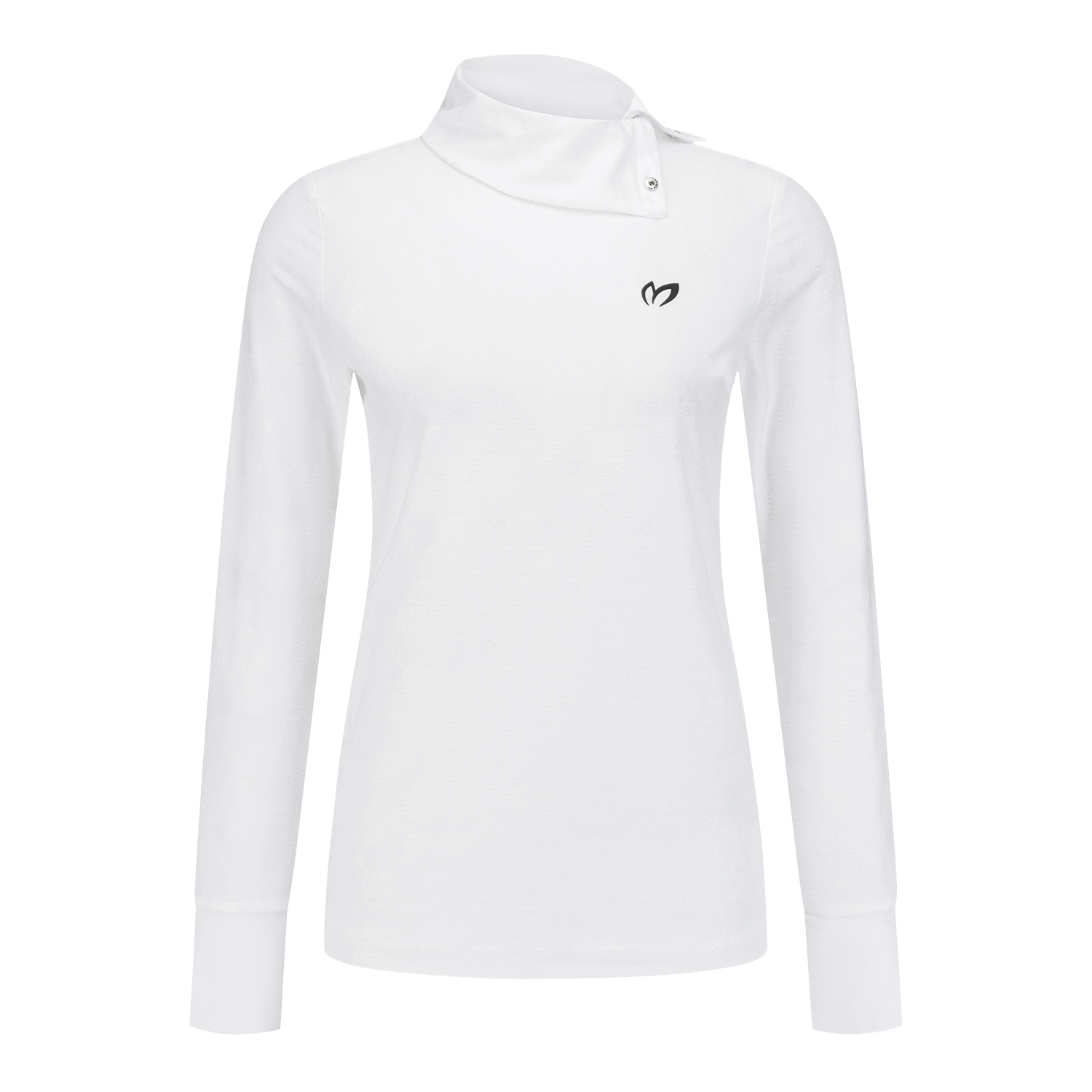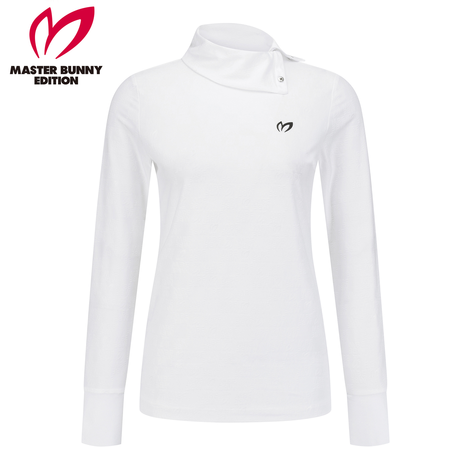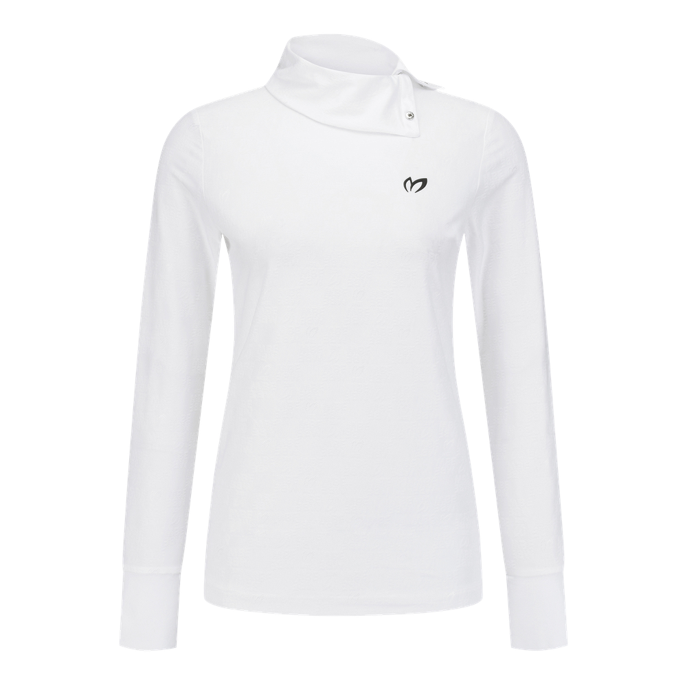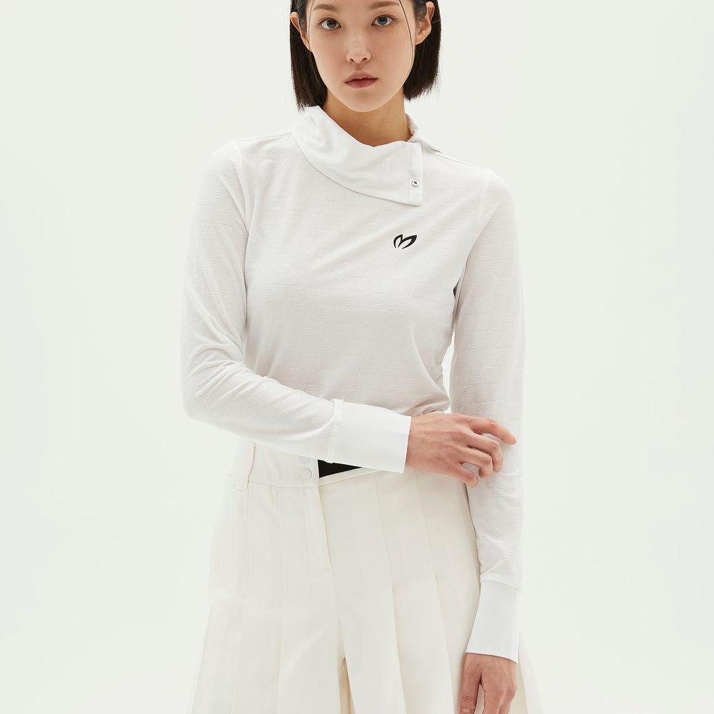 여성 스냅 하이넥 로고 패턴 티셔츠