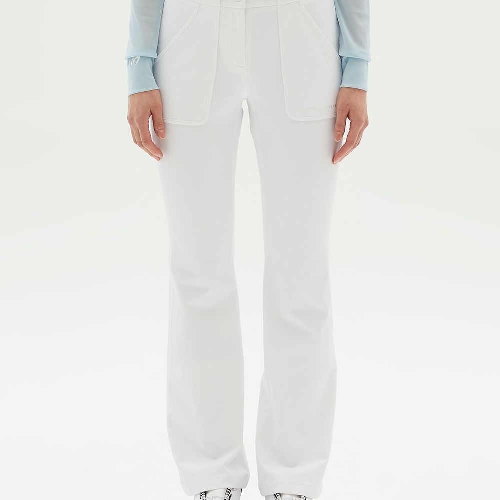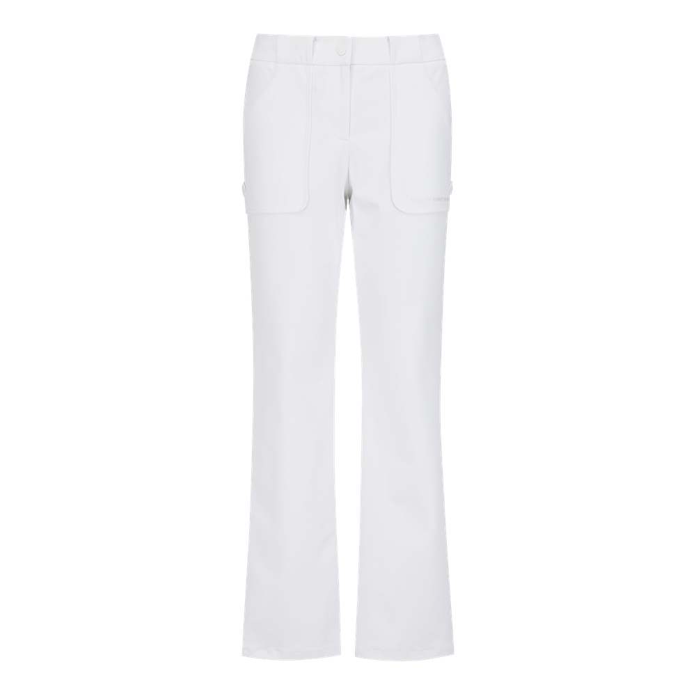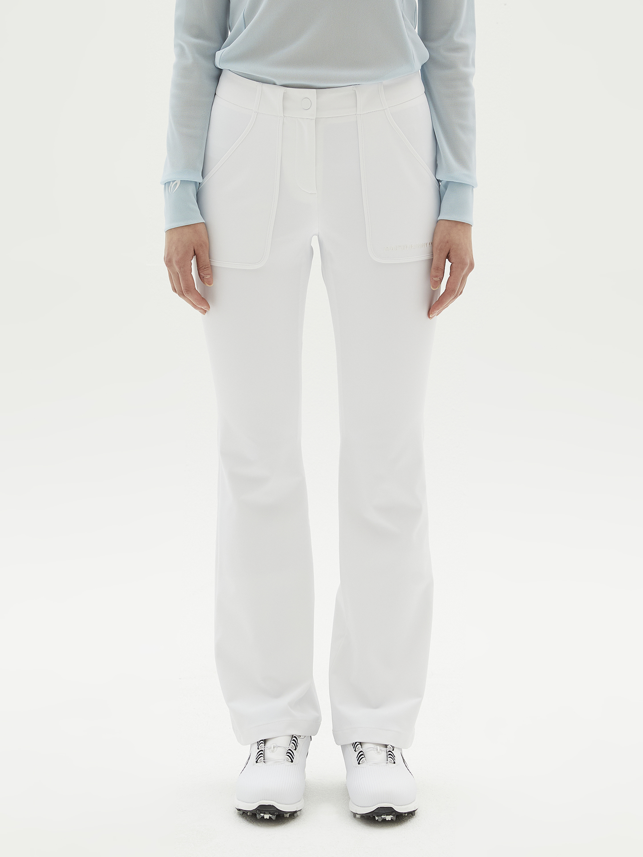 신축성 좋은 폴리원단으로 활동하기 편한 부츠컷 팬츠.앞판 포켓을 덧방하여 비조장식과 함께 포인트를 줌.WH/BL컬러로 SS시즌에 화사하게 활용하기 좋은 디자인.신축성이 뛰어난 폴리스판 소재. 냉감+비침방지+자외선 차단 기능성 원단을 사용.표면 발수코팅으로 생활 오염 방지