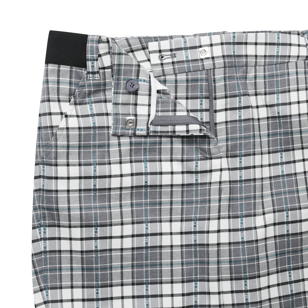 마스터바니 로고믹스 체크원단을 사용한 8부 팬츠시즌패턴으로 421D1JV191 와 세트 착용에 용이신축성이 좋은 체크패턴의 면혼방 소재.