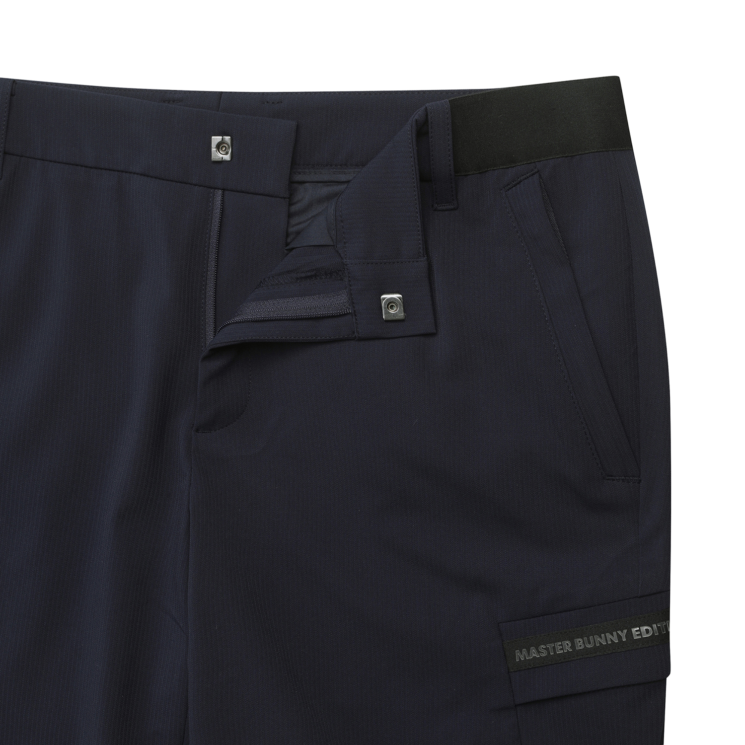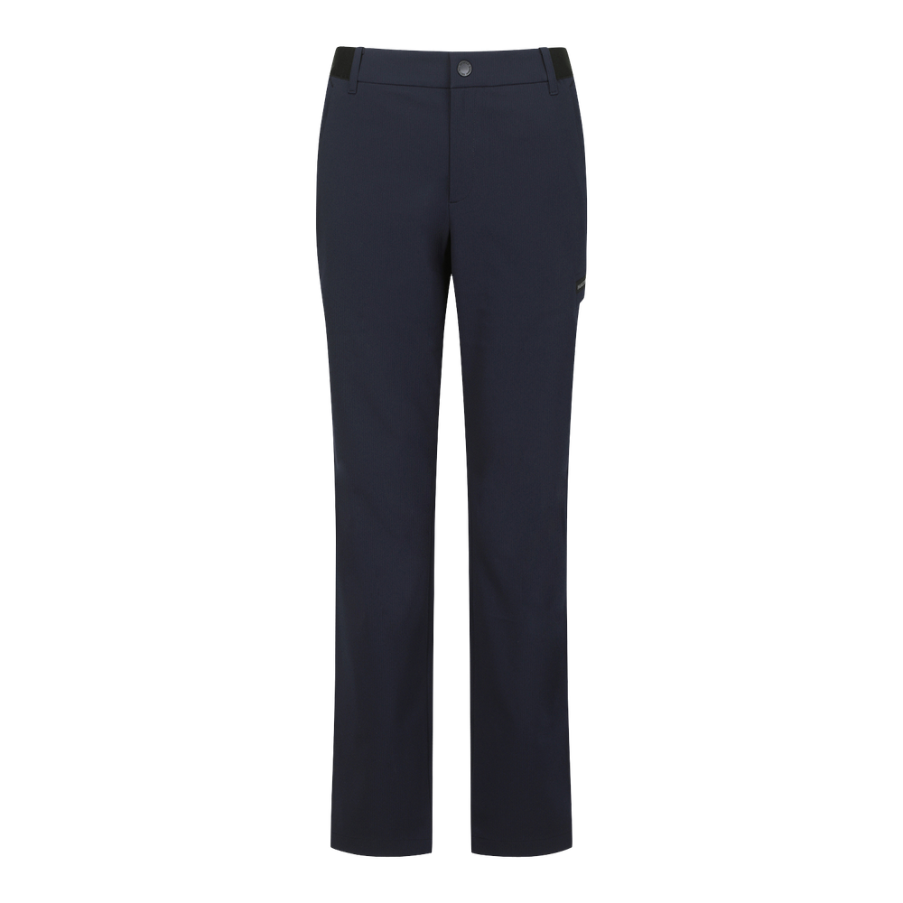 헤링본체크로 은은한 조직감 있는 일자팬츠아웃포켓에 배색테이프 티꽂이를 더해 포인트 줌.헤링본 조직에 신축성이 좋은 폴리스판 소재, 중공사 원사를 사용하여 복원력이 좋으며 쾌적한 착용감의 소재.