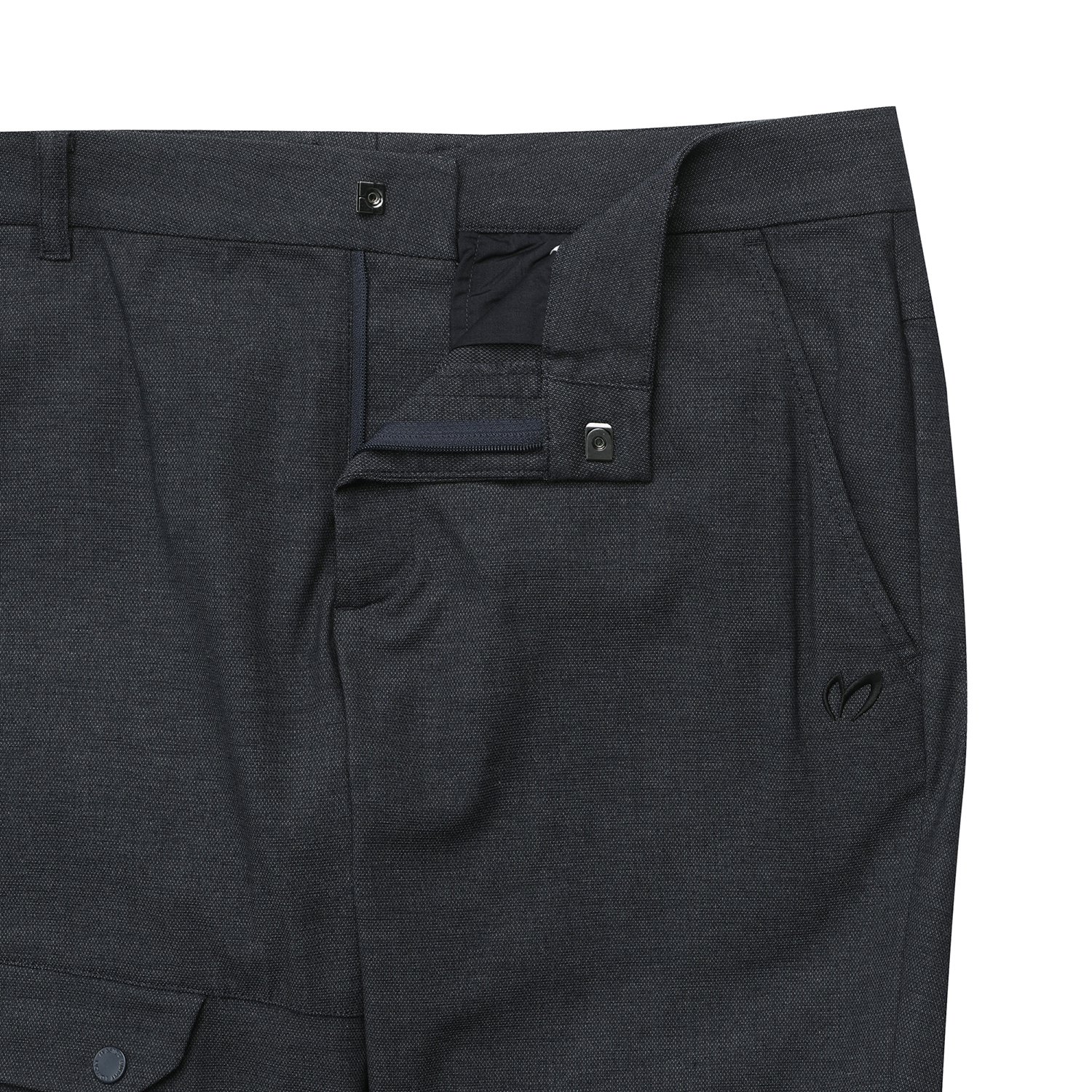 C/N/PU로 데님느낌의 9부 카브라 팬츠 무릎 후다포켓 포인트로 한층 영한 감각의 롤업 팬츠C/N/PU의 편안하며 쾌적한 착용감의 소재를 활용한 팬츠.