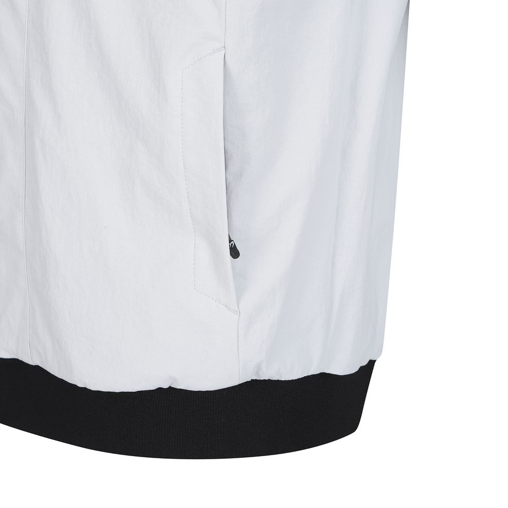 조직감있는 도톰한 원단을 사용한 블루종 점퍼가슴에 로고엠보로 포인트를 주고 안쪽에 숨어있는 포켓 디테일이 있음등 전체 통패널을 적용한 스타일로 활동성이 매우 좋아 봄 시즌 라운딩에 적합한 아이템스판성이 좋으며 조직감 있는 나일론 스판소재를 사용하여 청량한 착용감이 있는 소재.