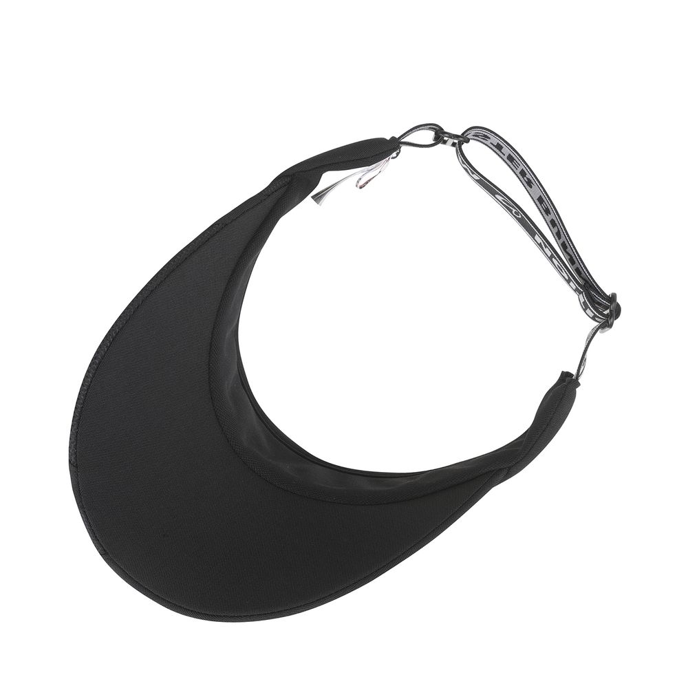 8.5CM 길이의 와이드챙에 절개포인트를 적용해스포티한 연출을 할 수 있는 썬바이저411D1TO003번 티셔츠와 코디네이션을 할 수 있으며,밴딩 조절 기능으로 여성고객도 착용해 포니테일 연출이 가능한 제품