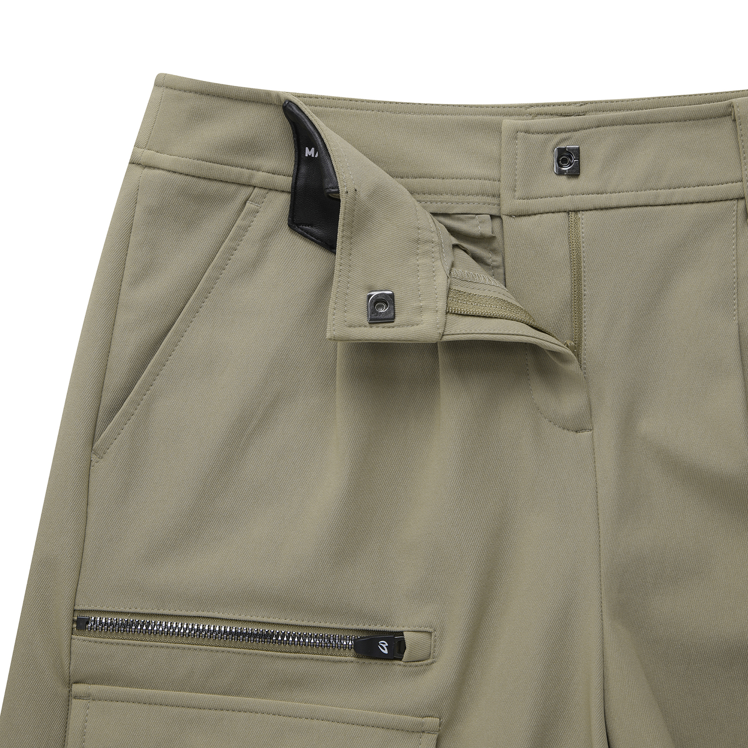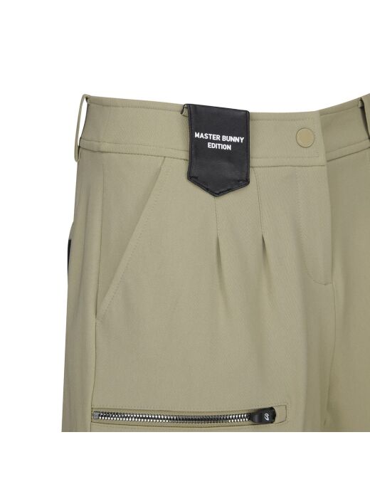 디자인앞판 벨트고리에 가죽을 MIX한 반바지앞판의 아웃포켓으로 포인트를 줌.소재복원력과 스판이 좋은 NRPU 소재 발수처리로 생활 오염 방지.
