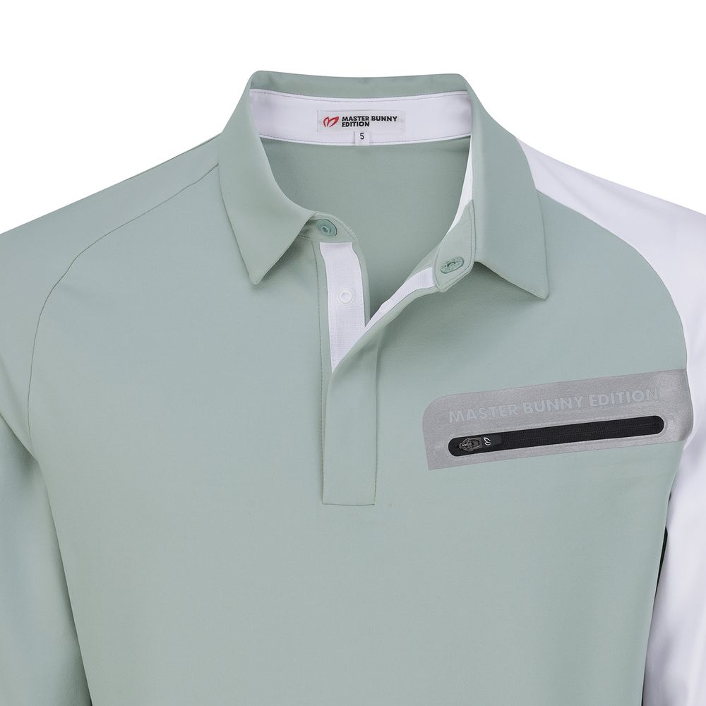 디자인소매 배색과 앞판 리플렉티브 웰딩지퍼로 색다른 디테일을 보여주는 나그랑 소매의 L/POLP. (앞판 포켓은 포켓역할 불가능함)