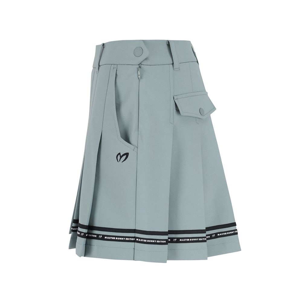 디자인T/R 스판 소재를 사용한 플리츠 스커트.배색 테이프와 뒷오비 자수로 포인트를 줌소재보온성이 좋고 신축성이 좋은 티알스판 소재를 활용.