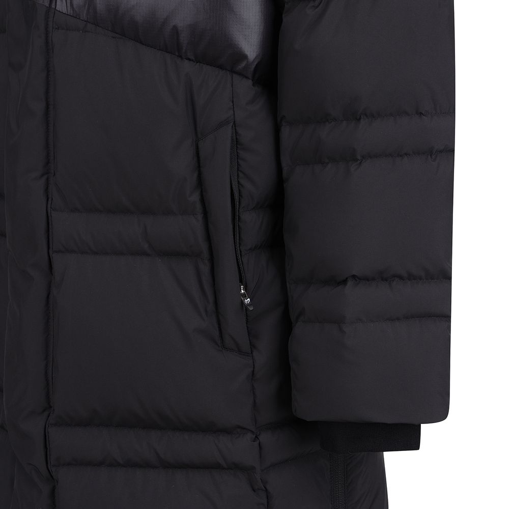 디자인롱다운 점퍼앞판 절개부분과 등판 요크부분에 은은한 광택 원단을 사용하여 포인트를 주었음후드는 탈착이 가능하여 다양하게 코디할수있고, 안쪽에 로고를 넣어 디자인함밑단양쪽에 지퍼를 사용하고, 등판엔 저지 통패널을 사용하여 활동감을 높힘소매에 시보리바람막이를 사용하여 보온성을 높힘소재전체 소재는 라미 가공을 한 2레이어의 폴리 경량 소재를 사용,소프트한 터치과 발수처리가 되어 있음.배색은 광택감이 있는 톤톤의 나일론 경량 소재를 사용 시레 가공을 하여 광택감이 있는 경량소재.충전재구스다운 90:10