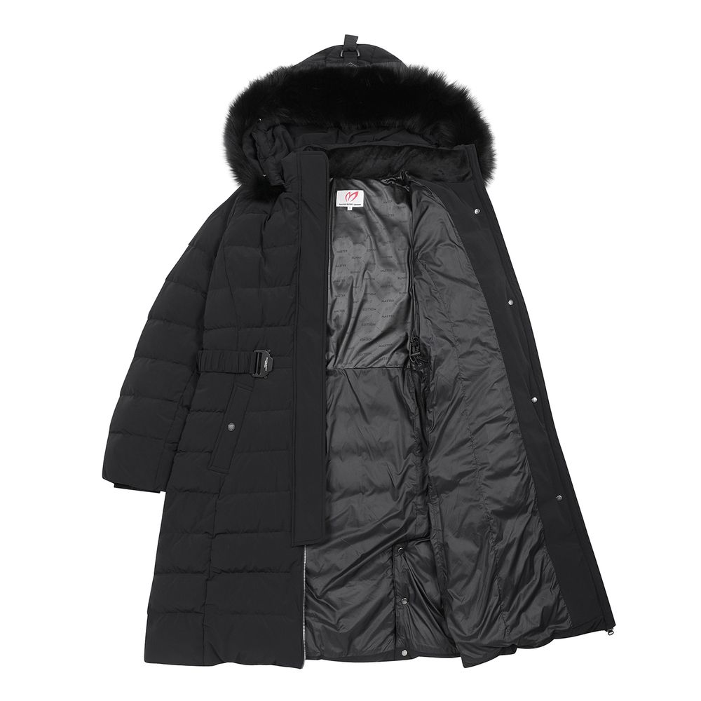 디자인겨울헤비다운 롱점퍼. 넉넉한 길이와 두꺼운볼륨감을 사용하여 한파에 추위를 막기에 적합.후드 퍼 탈부착 형태로 두가지 코디로 활용가능.벨트도 탈부착이 가능하며, 후드 와펜으로 포인트를 줌.소재전면에 생활오염 방지가 되는 발수처리가 된 신축성이 좋은 나일론스판 소재를 사용.블루폭스 퍼를 사용하여 보온성이 뛰어남.충전재구스다운 90:10