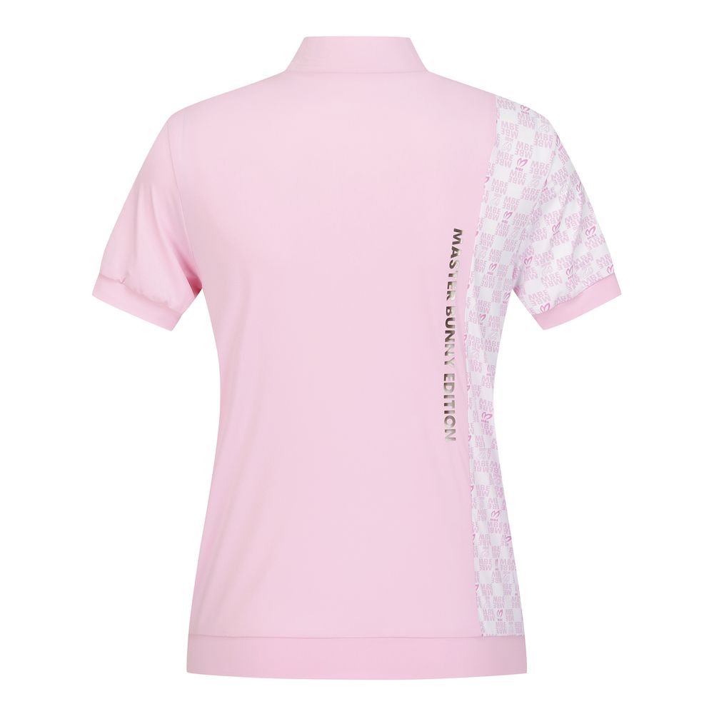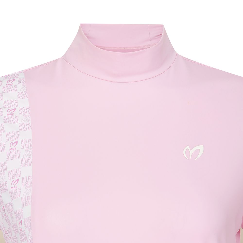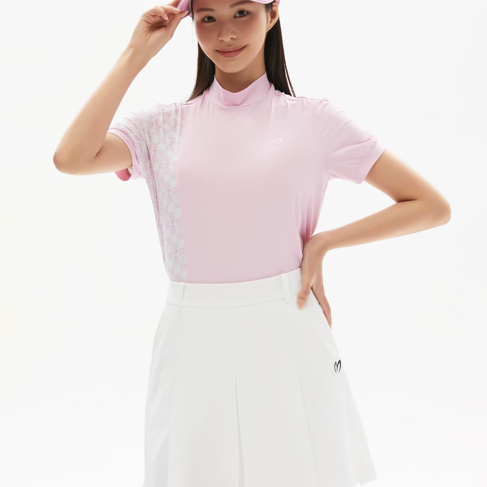 여성 로고 체크 믹스 모크넥 반팔 티셔츠