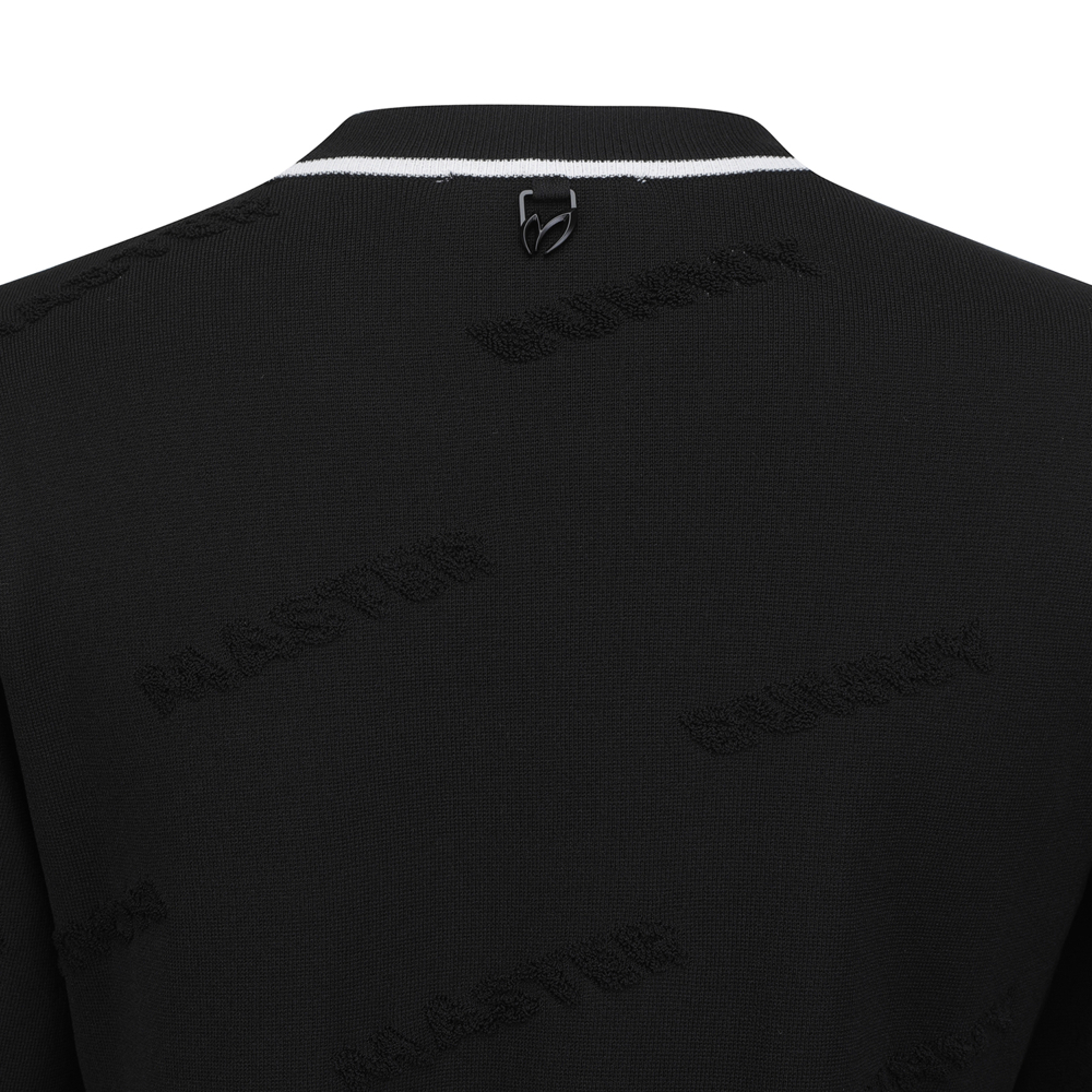 은은한 로고 패턴과 네크라인, 소맷단의 배색이 포인트인 여러 착장에 매치 가능한 베이직한 니트 상의.레이온 혼방 자가드 소재로 뛰어난 경량성을 자랑하며 장시간 라운딩에서도 쾌적한 착용감을 유지해주는 아이템