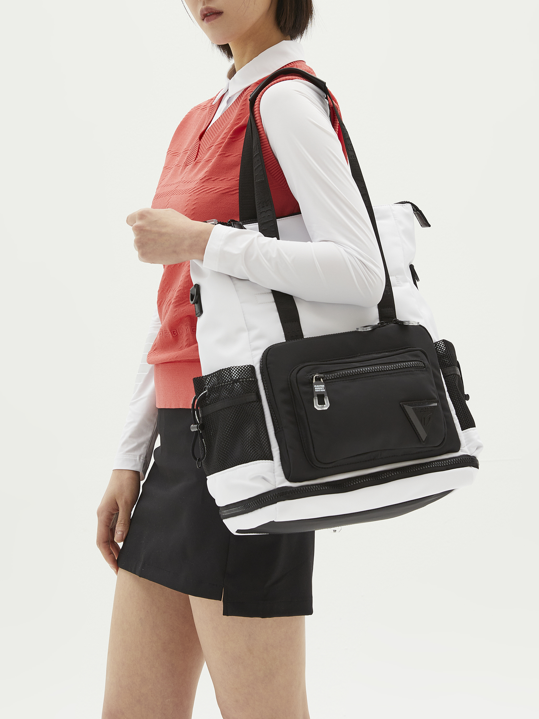 마스터바니 스테디 토트백의 업그레이드 버전다양하게 수납 가능한 포켓과 하단 확장 지퍼가 있어이전 버전 보다 더 많은 수납이 가능하게 제작된 제품상부를 접어 크로스 백으로도 확용 가능한 멀티 토트백