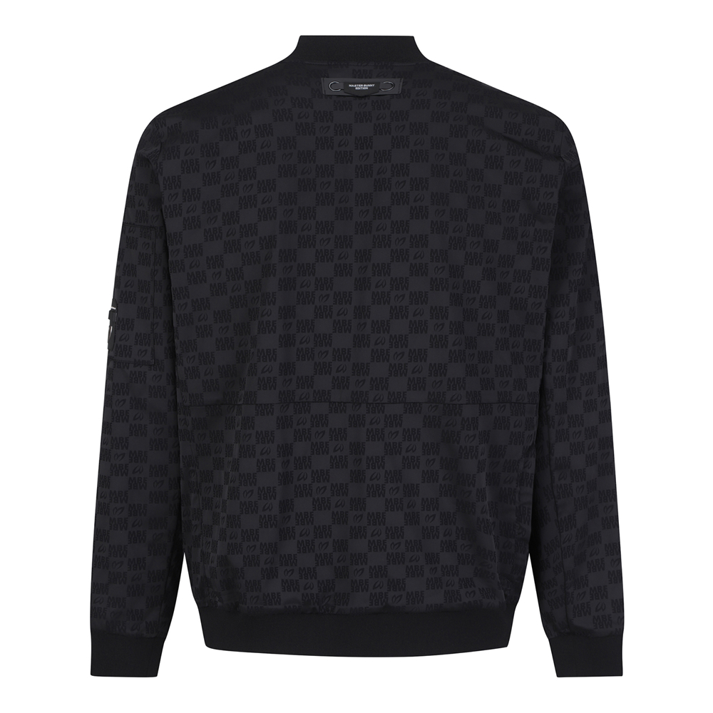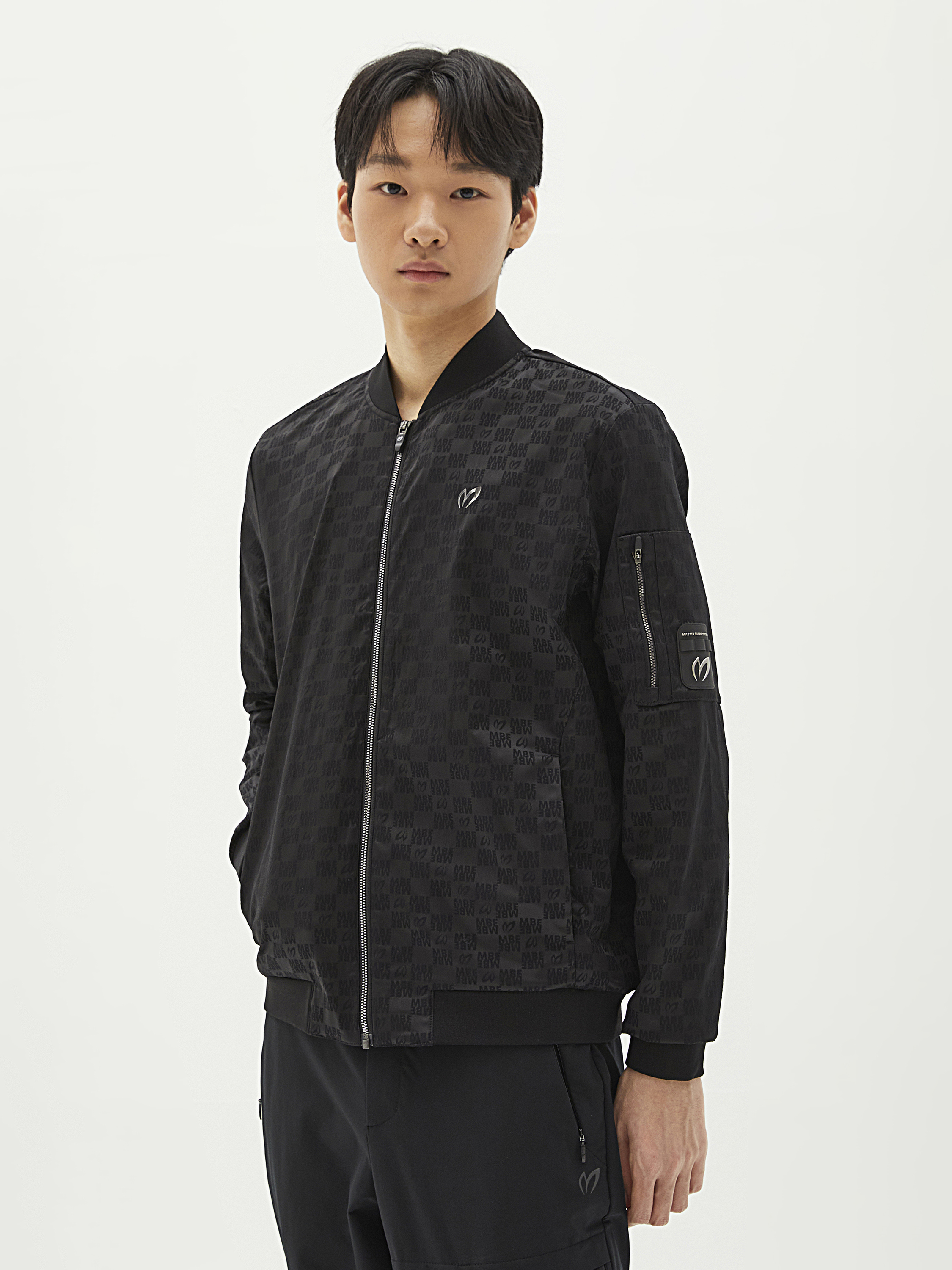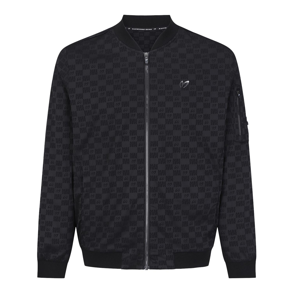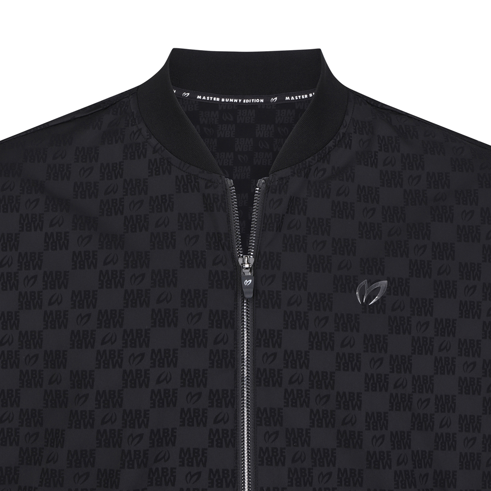 마스터바니로고를 자가드로 직조해 제작한 항공점퍼이며, 자가드지만 스트레치성이 좋고 터치가 소프트함.등판하단에 포켓이 달려있어 유용, 은은한 마스터바니 로고 패턴,스판성이 좋은 면터치 느낌의 폴리스판 소재를 사용