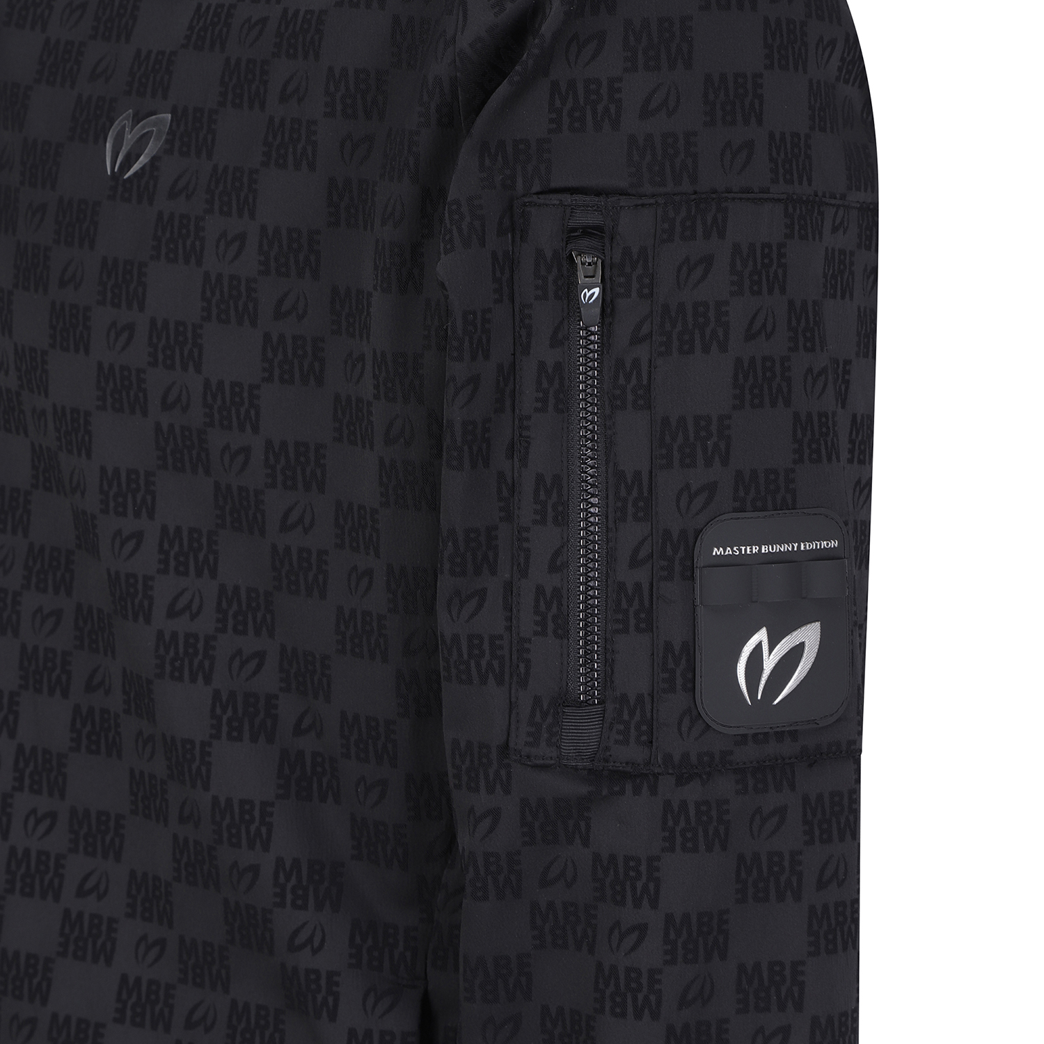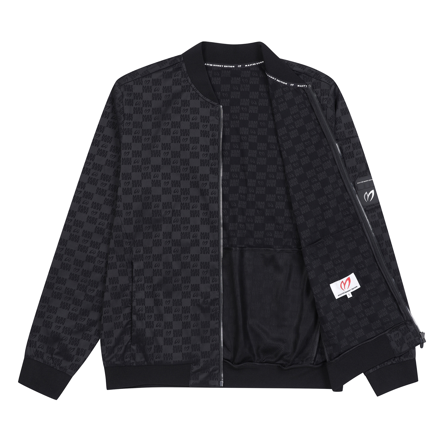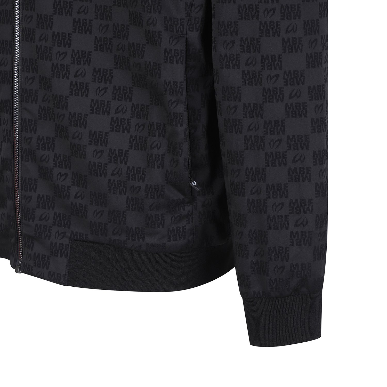 마스터바니로고를 자가드로 직조해 제작한 항공점퍼이며, 자가드지만 스트레치성이 좋고 터치가 소프트함.등판하단에 포켓이 달려있어 유용, 은은한 마스터바니 로고 패턴,스판성이 좋은 면터치 느낌의 폴리스판 소재를 사용