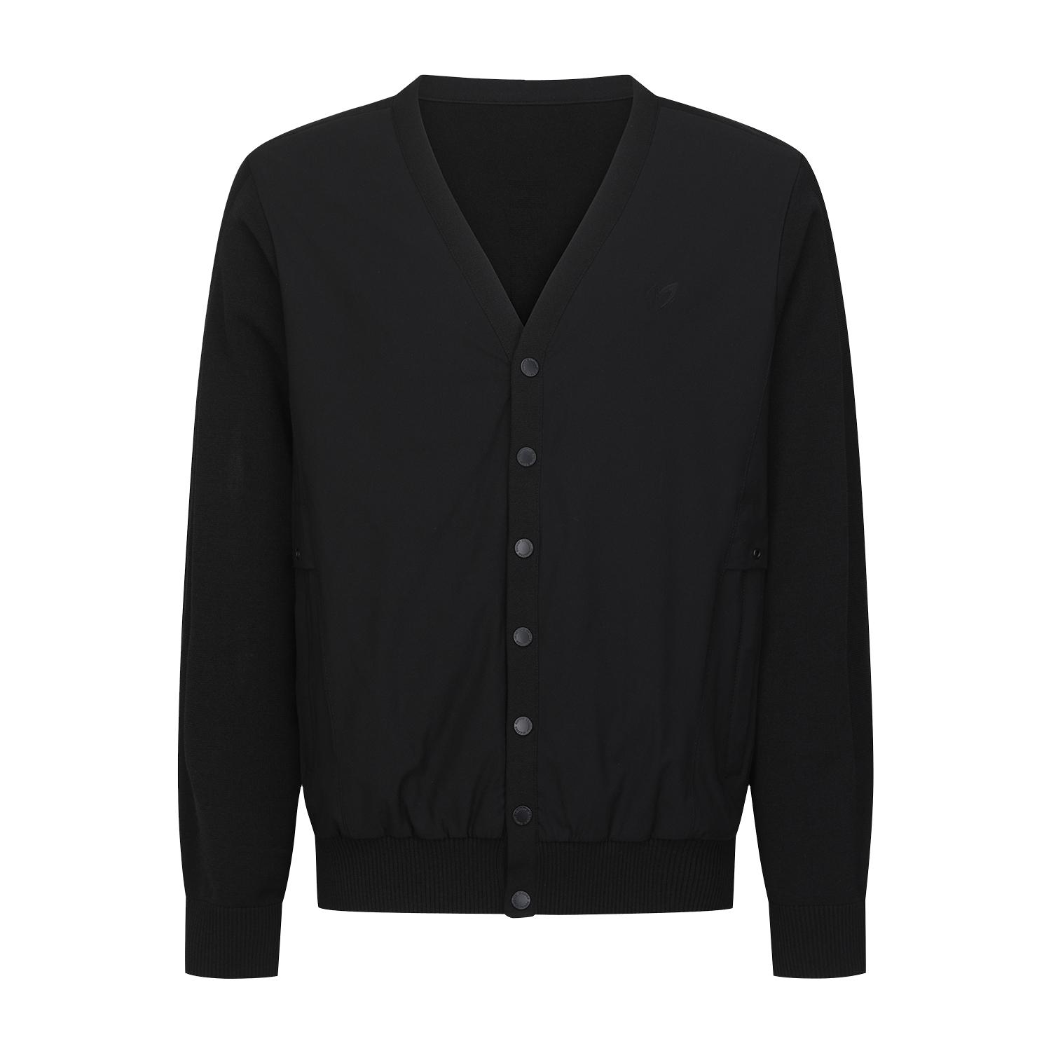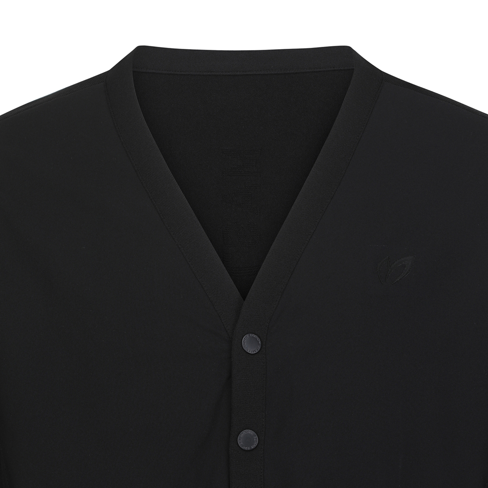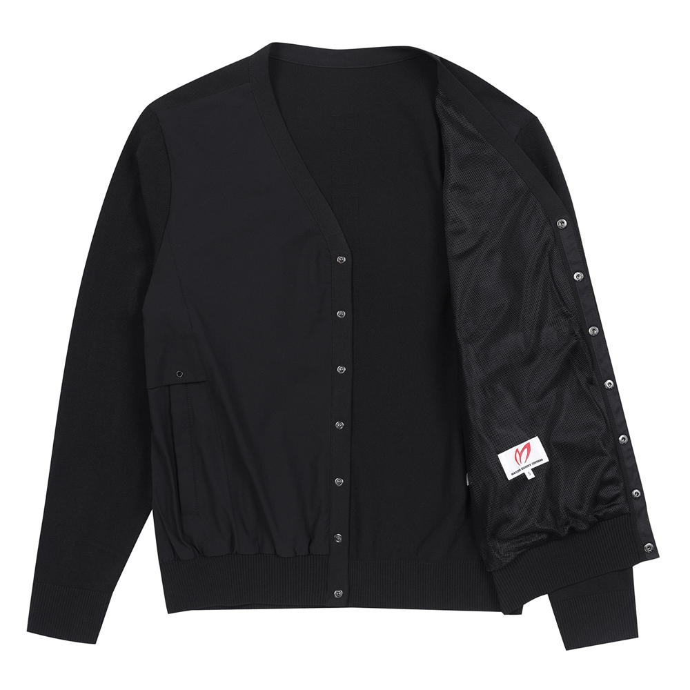 V넥 형태의 간절기 가디건으로 몸판[앞] 우븐 믹스로 데일리 착용으로도 용이한 제품