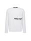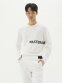 사선 조직을 믹스한 은은한 빅체크 스웨터. 배색 로고 레터링으로 포인트를 준 라운드 풀오버 스타일