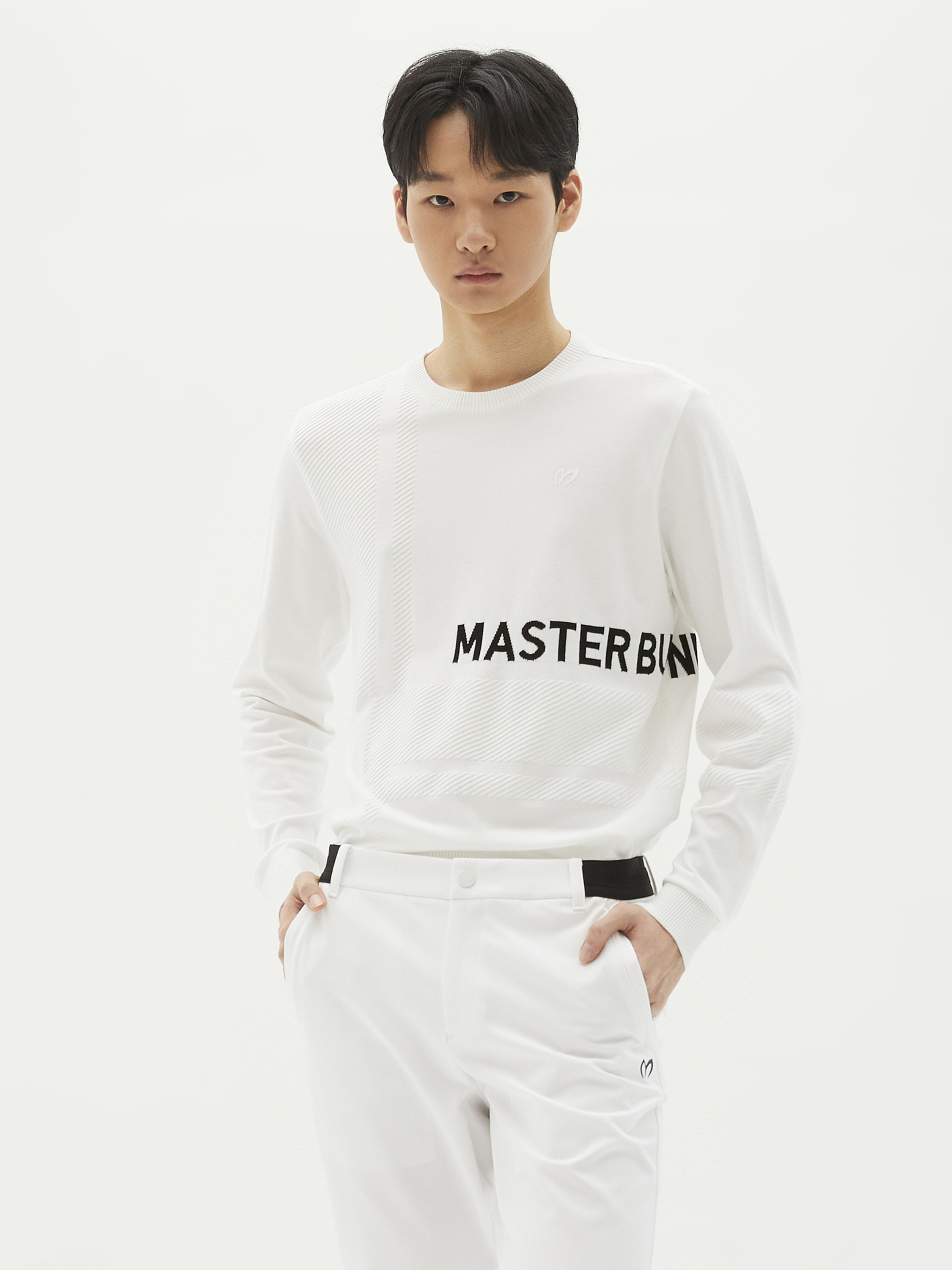 남성 사선 엠보 로고 니트