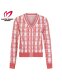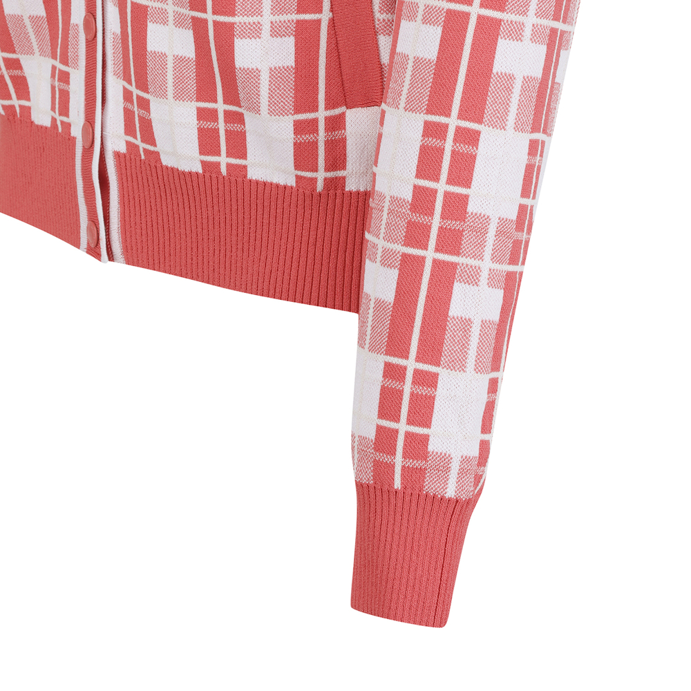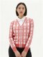 여성 로고 스트랩 체크 니트 가디건