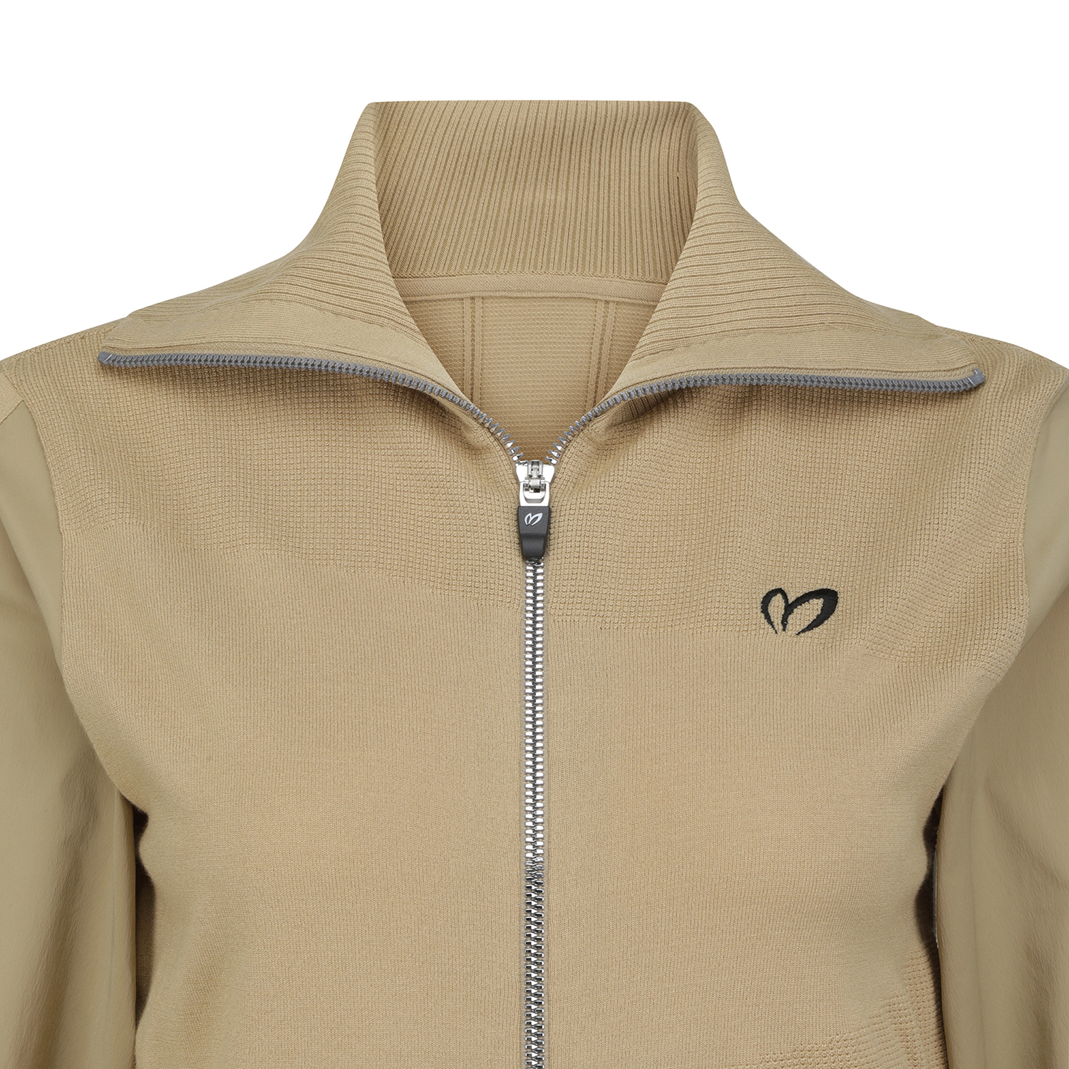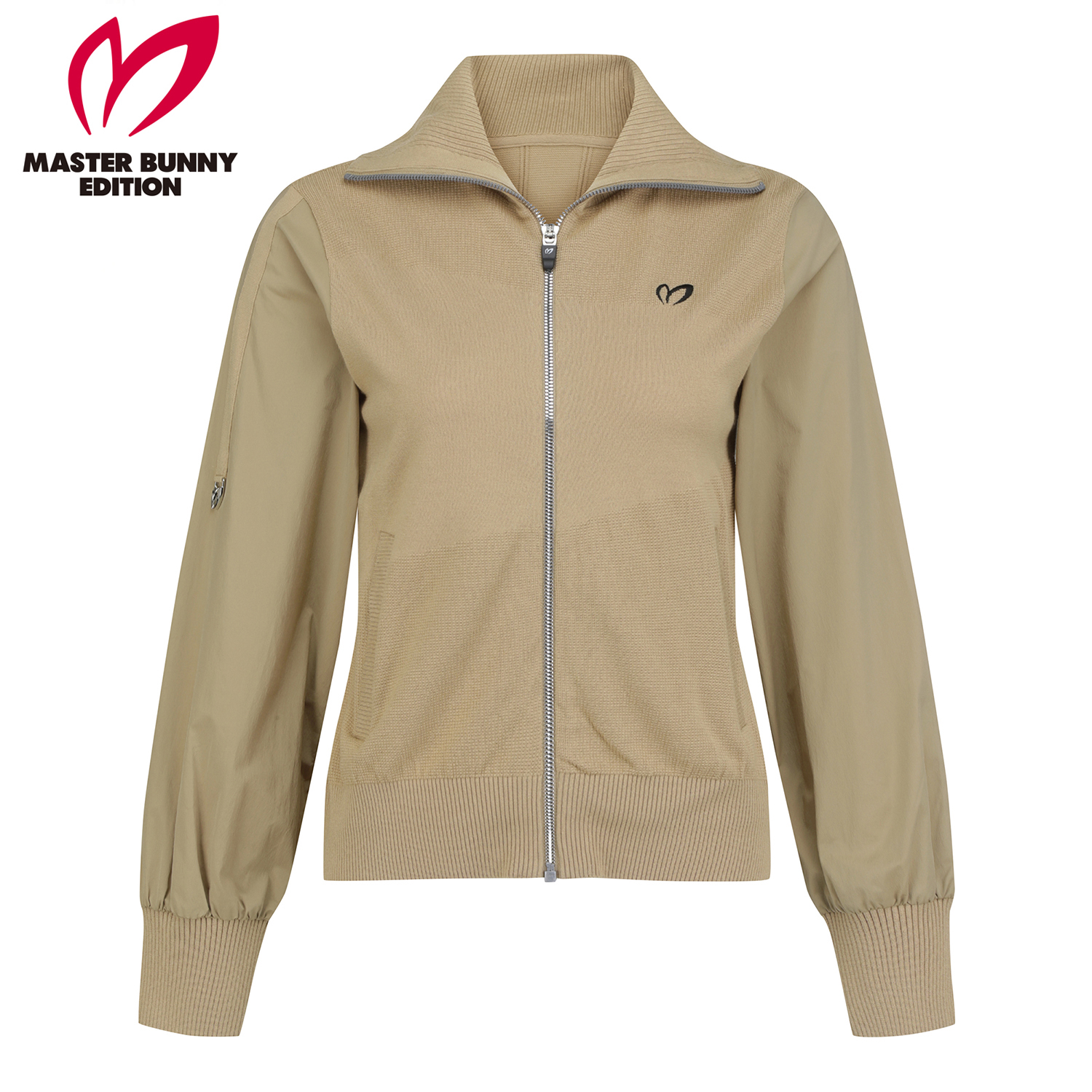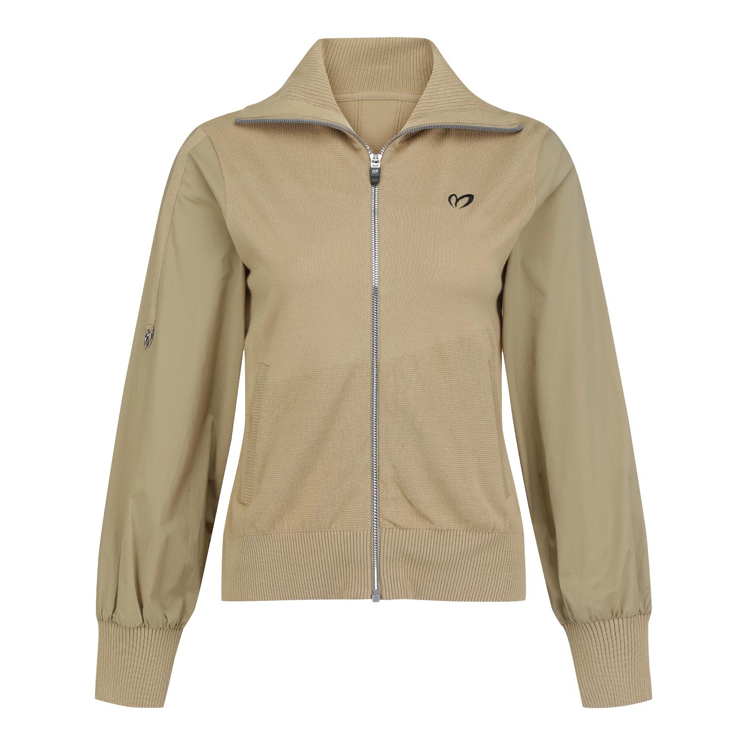 여성스럽고 시크한 느낌으로 소매에 우븐이 하이브리드된, 트렌디한 와이드 카라의 니트 짚업.터치감이 부드러운 레이온 혼방 소재를 사용하여 착용감이 우수함