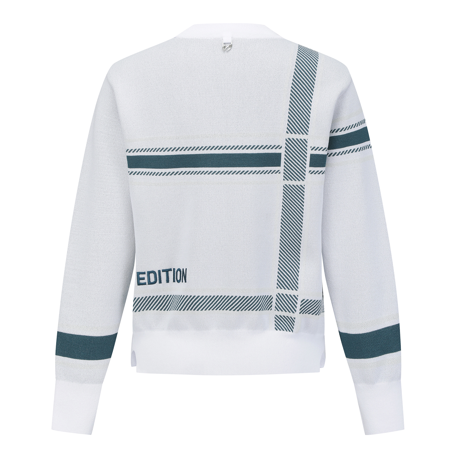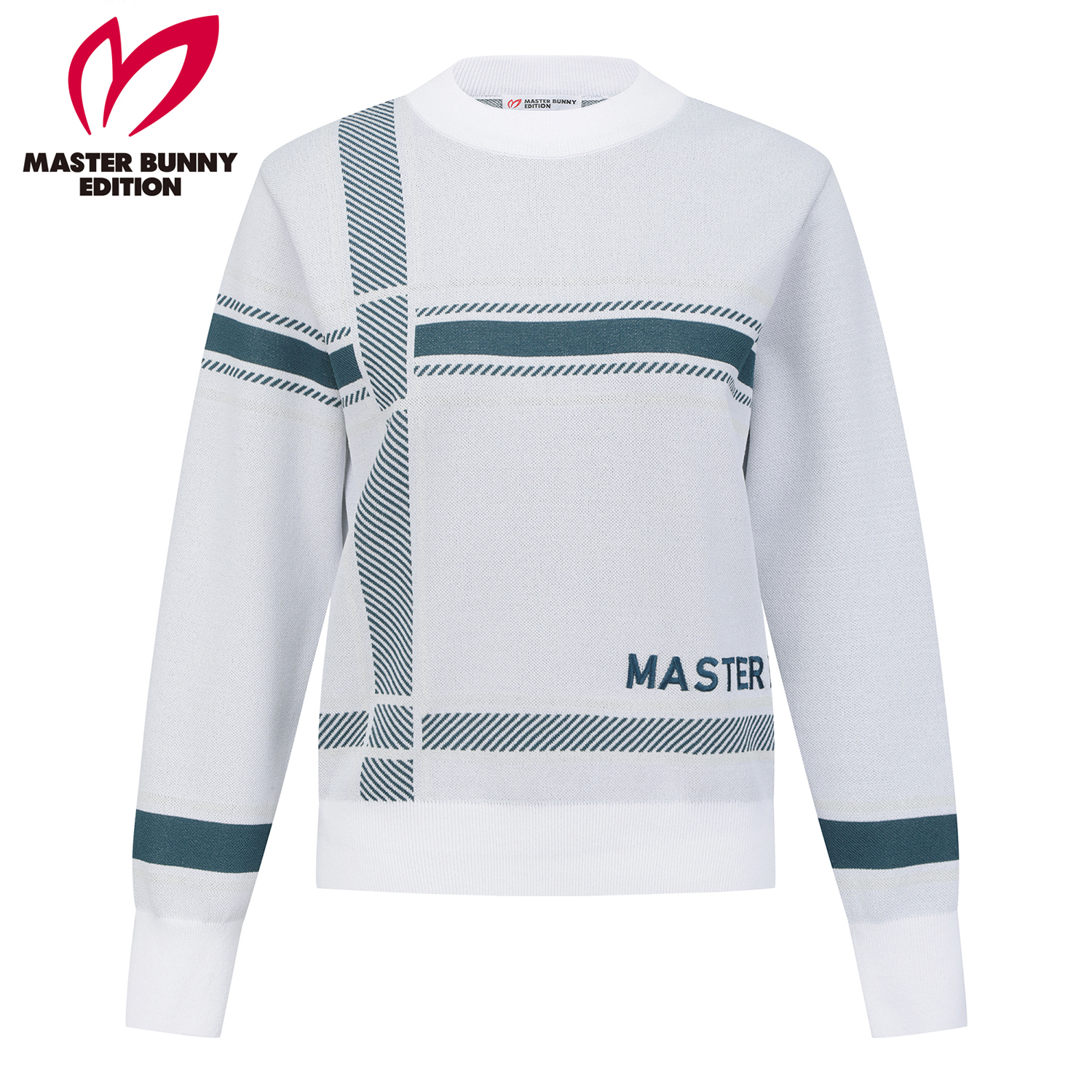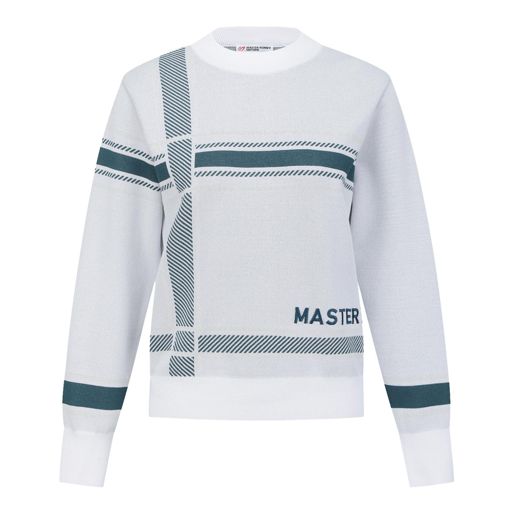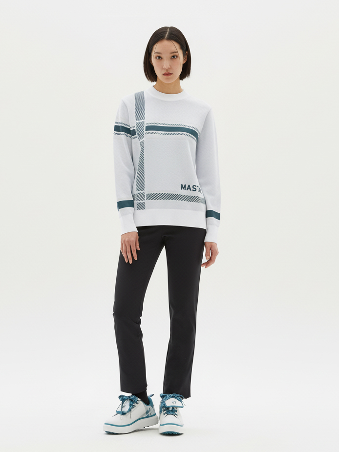 여성 로고 자수 체크 자카드 니트