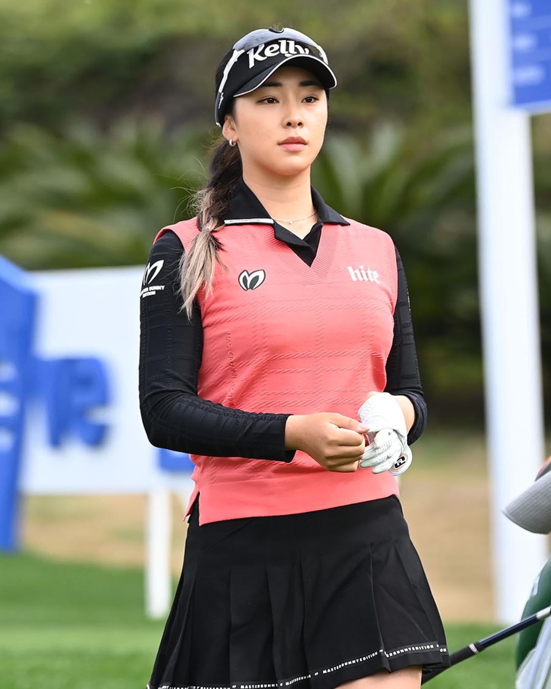 [윤이나프로 착용] 여성 엠보 체크 로고 니트 베스트