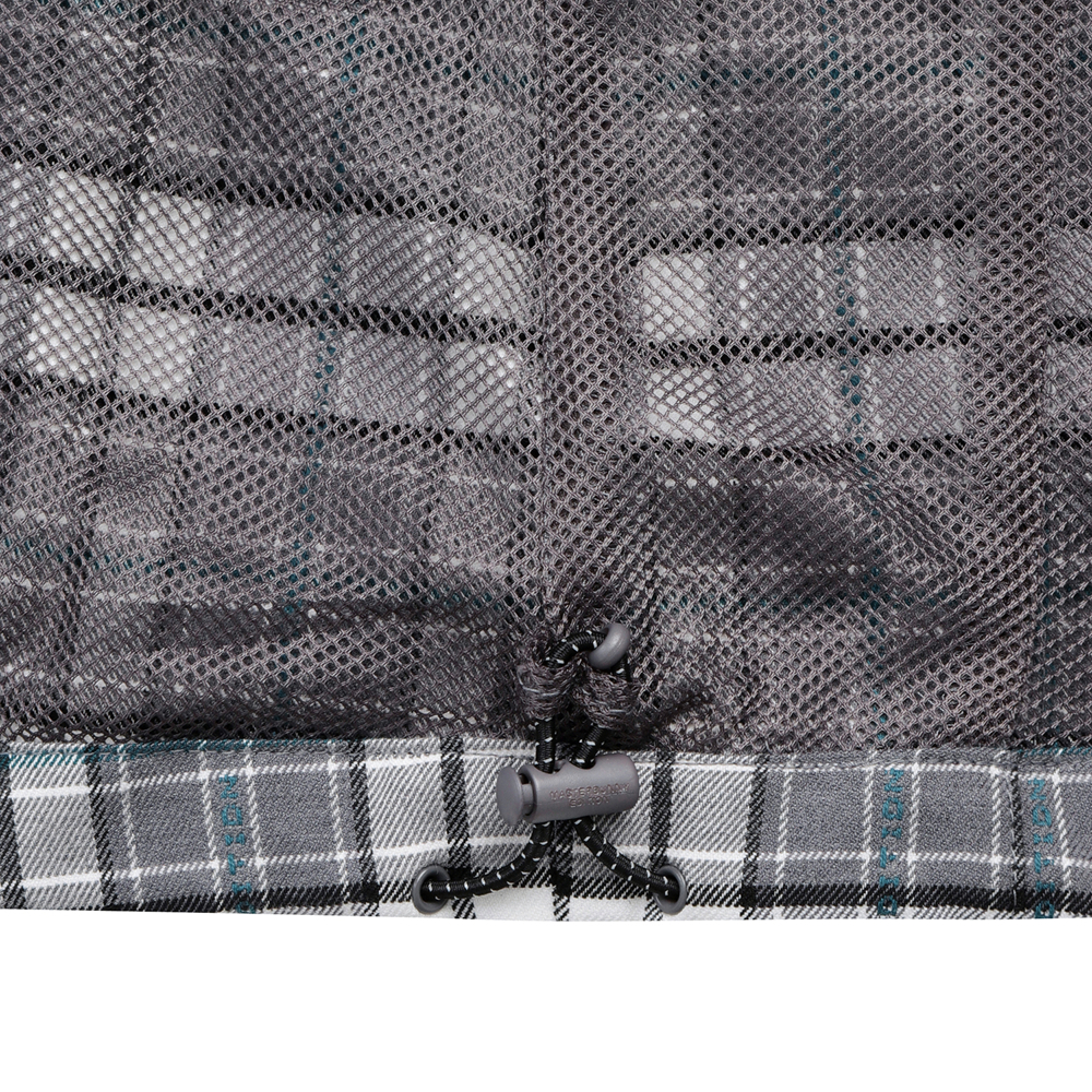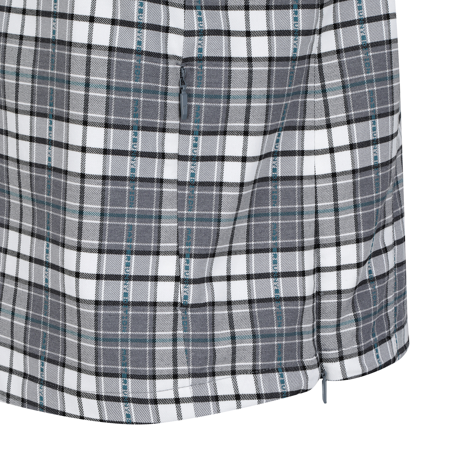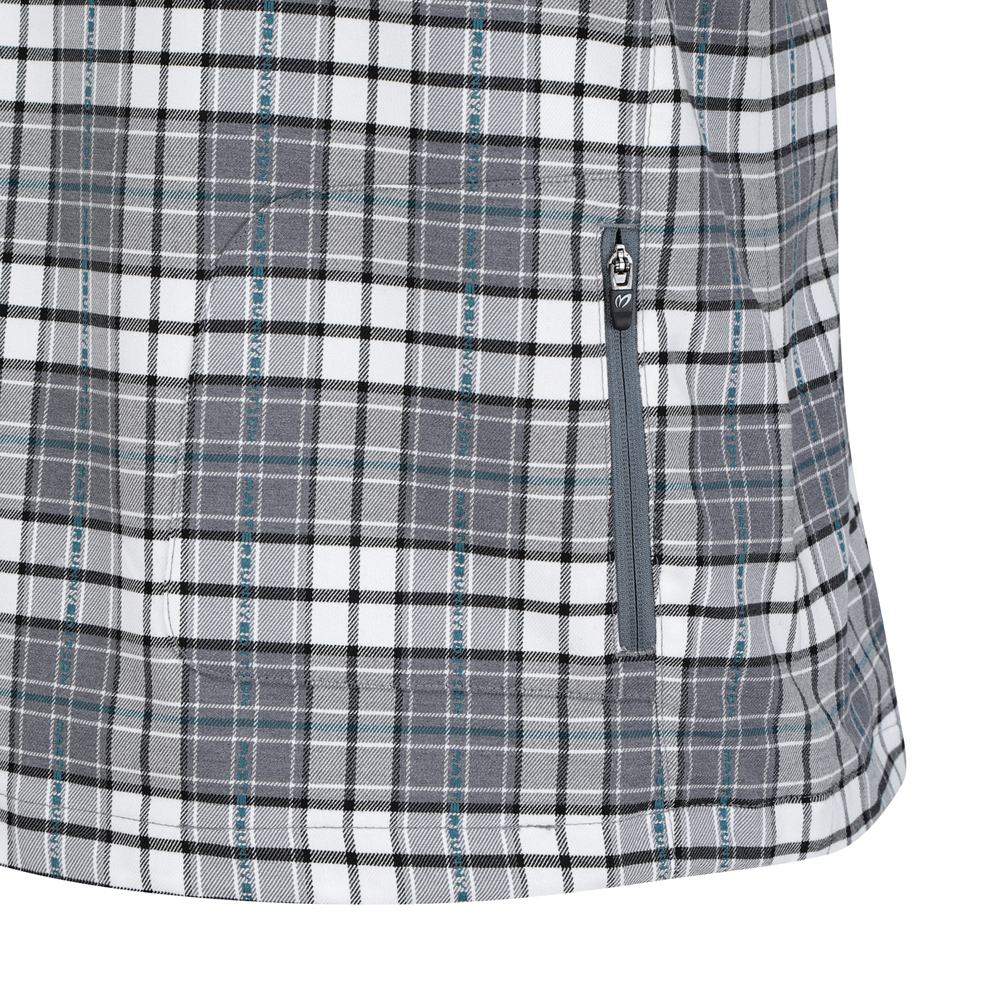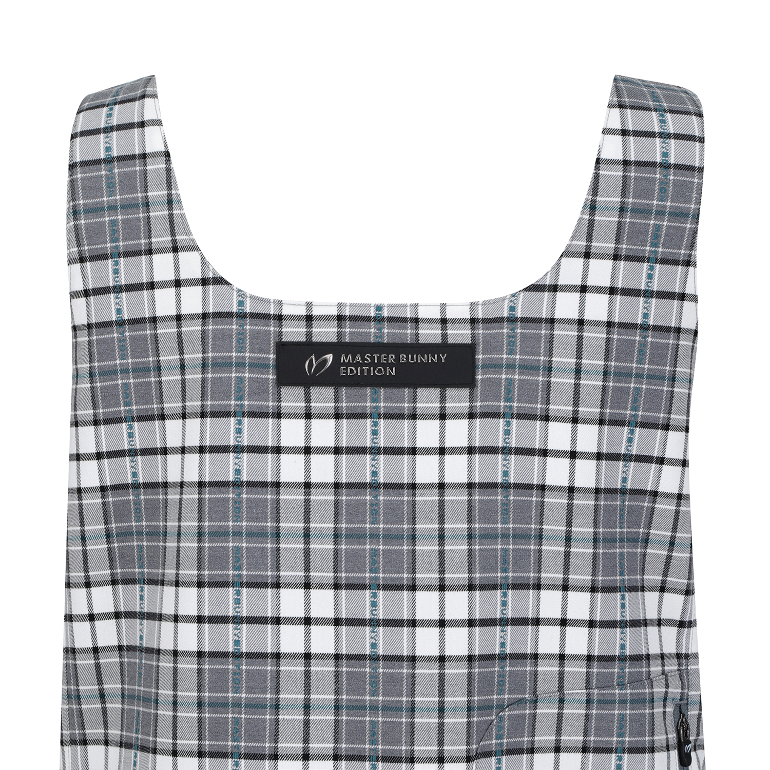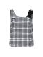 마스터바니 로고를 넣은 체크원단을 사용한변형 뷔스티에 베스트로 421D1PC191와 세트 착용에 용이언발란스한 어깨 비죠장식으로 포인트를 준 베스트.신축성이 좋은 체크패턴의 면혼방 소재.