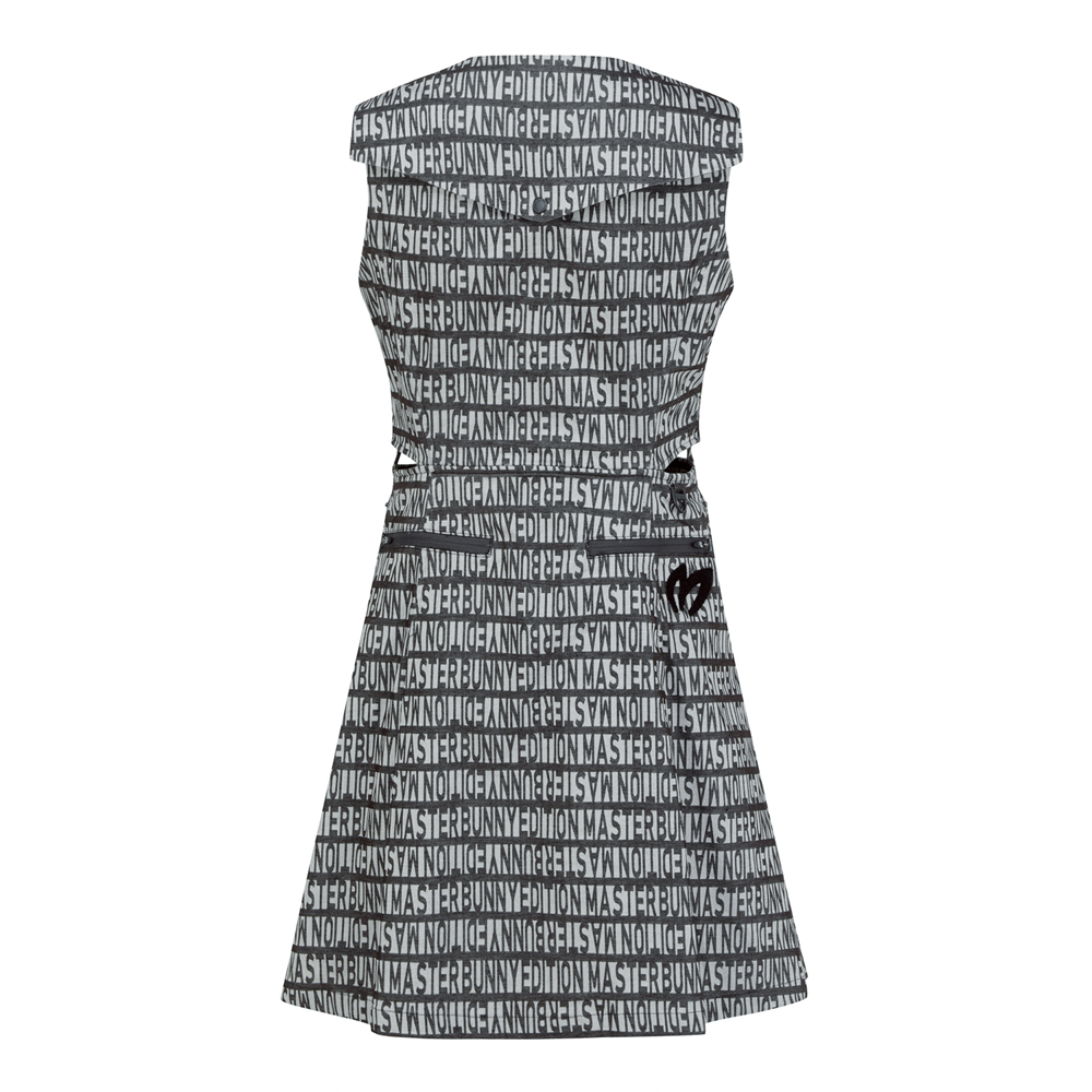 데님 자가드 주름 원피스로, 오비 비죠를 벨트고리로도 사용 가능하며, 오비 비죠를 트임 안쪽 스냅에 연결 하여 실루엣 연출에 용이한벌 착과 점퍼를 코디하거나, 냉감이너와 레이어드해 롱베스크로 다양하게 연출 가능마스터바니 로고 패턴을 활용한 신축성 좋은 데님 소재