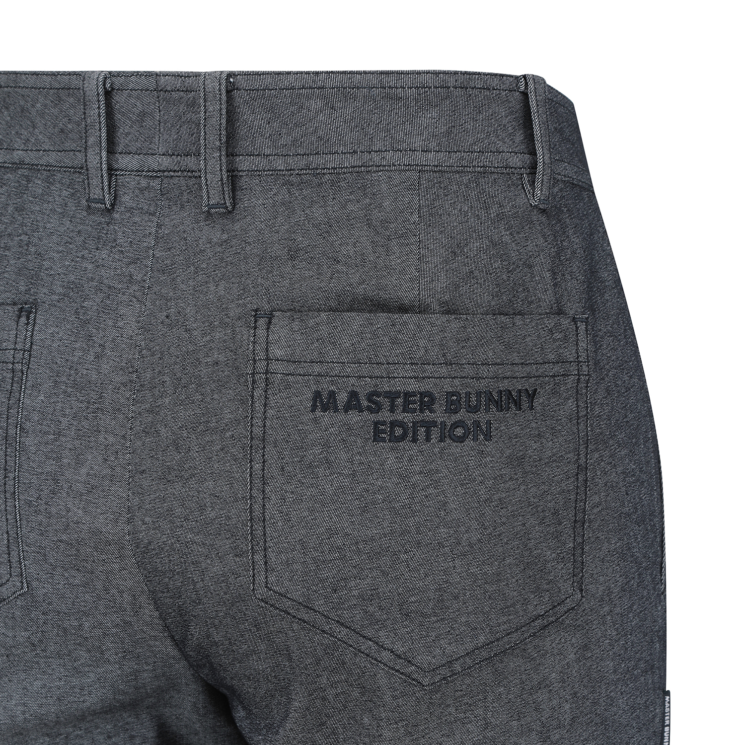 *데님라이크 팬츠데님라이크 스타일의 팬츠.톤톤의 스티치 배색으로 캐쥬얼한 느낌을 줌.오비에 스트레치 심지를 이용해 허리부분이 늘어남