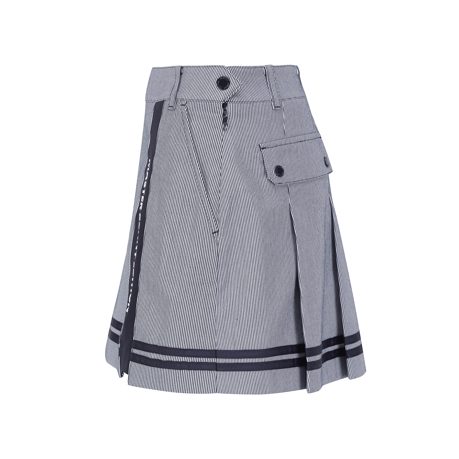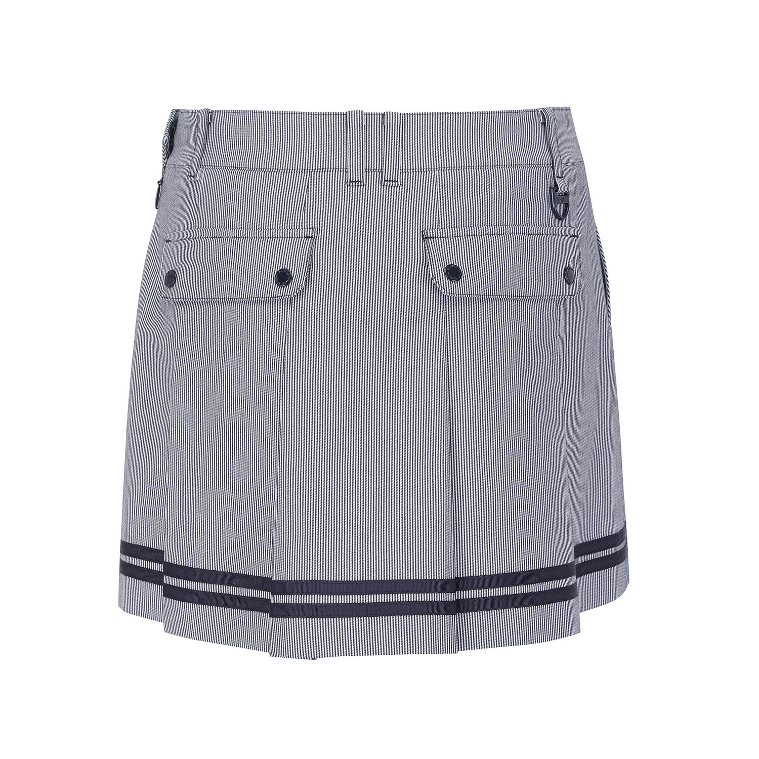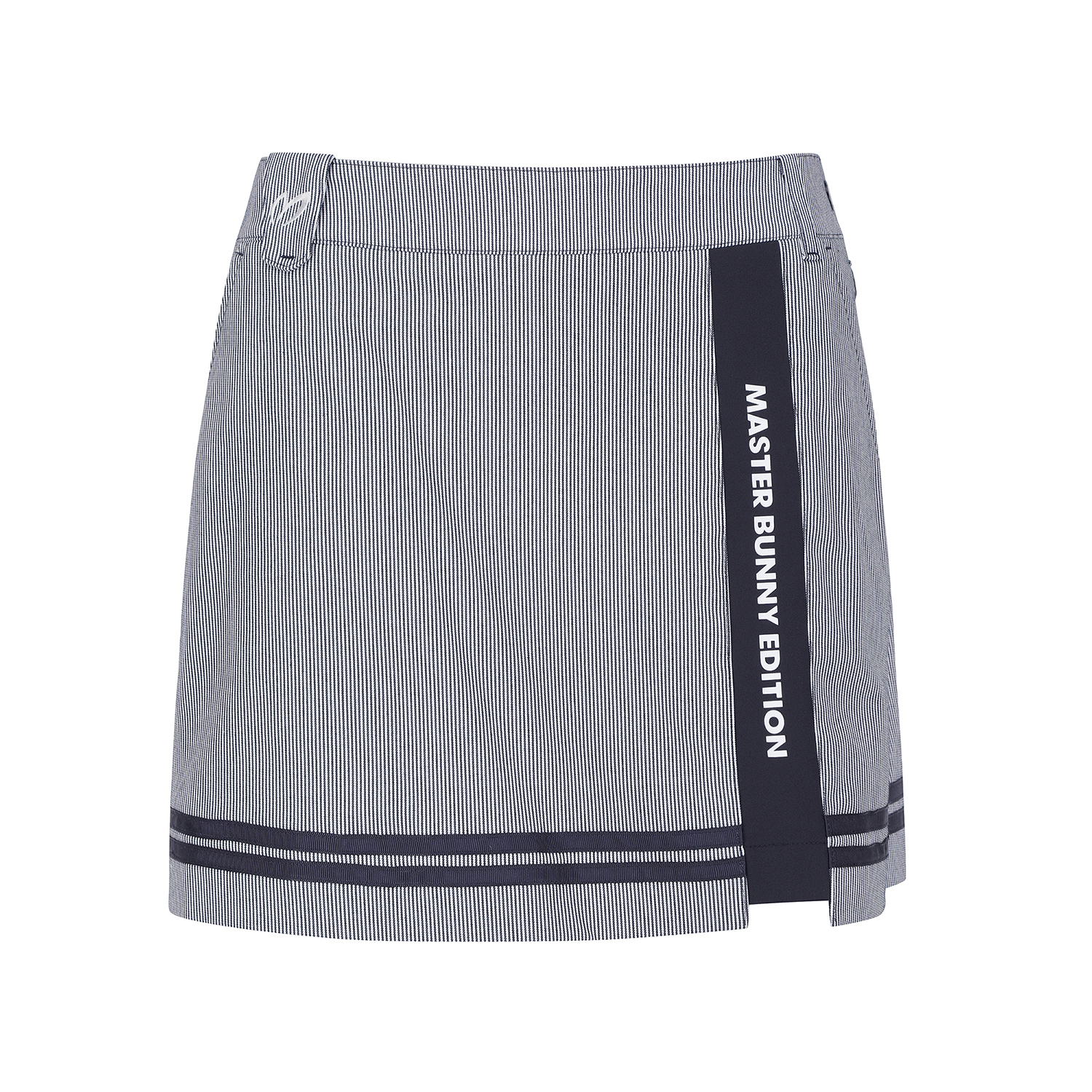 *스트라이프 배색 포인트 큐롯 앞판은 A라인, 뒷판은 플리츠 주름으로 앞, 뒤 반전 스타일. 오비 스트레치 벤놀심지를 내장해 활동성을 높임