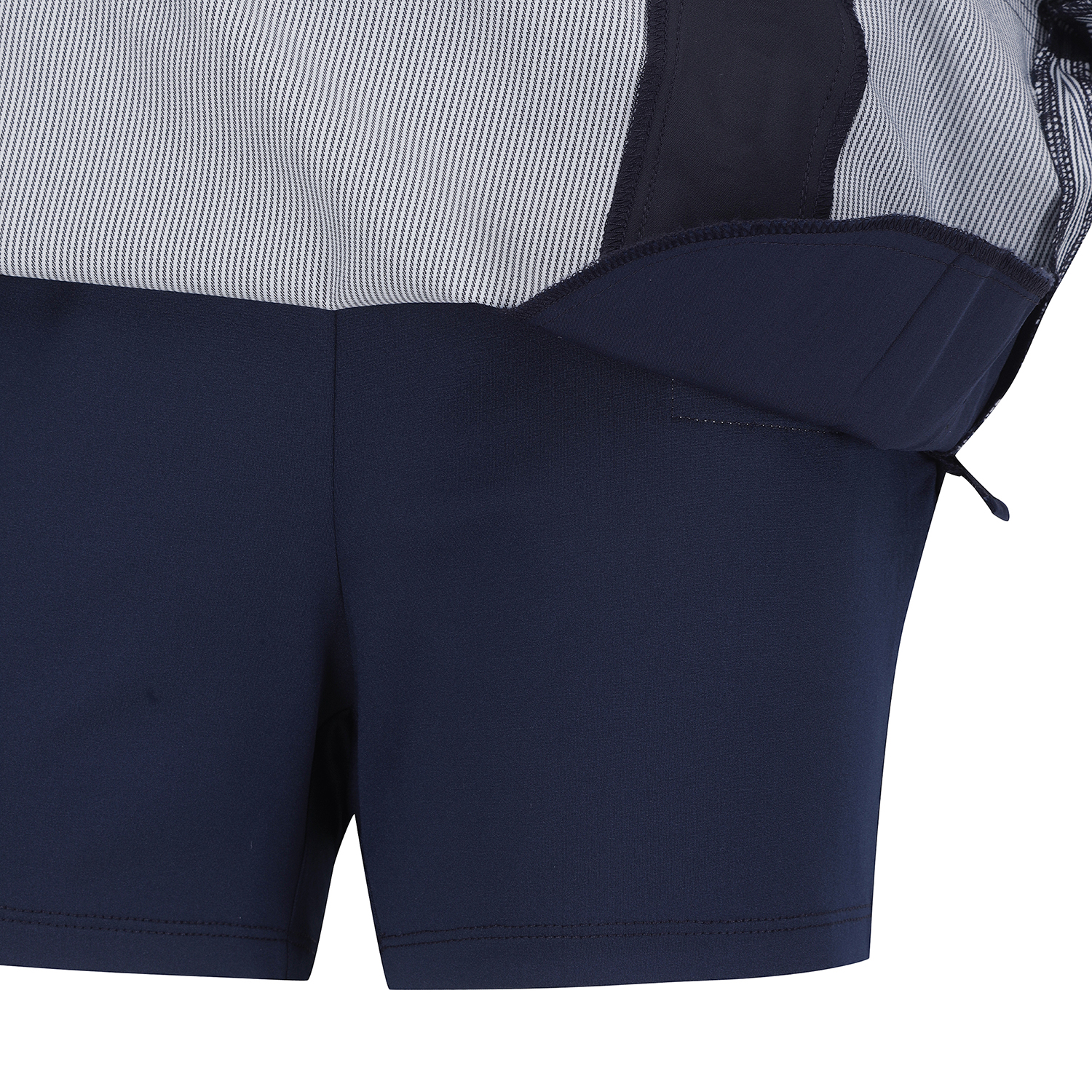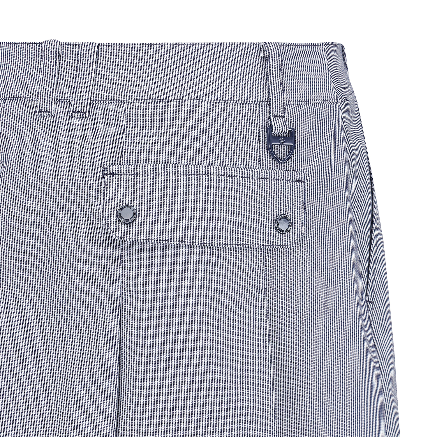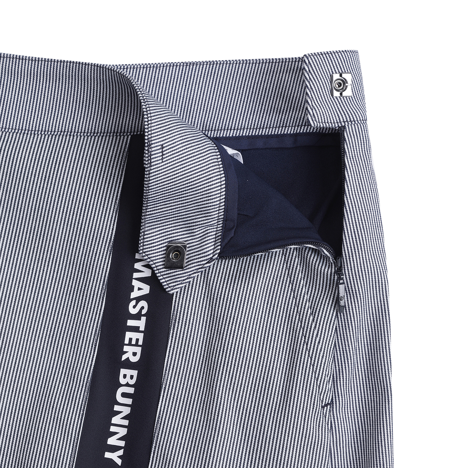 *스트라이프 배색 포인트 큐롯 앞판은 A라인, 뒷판은 플리츠 주름으로 앞, 뒤 반전 스타일. 오비 스트레치 벤놀심지를 내장해 활동성을 높임