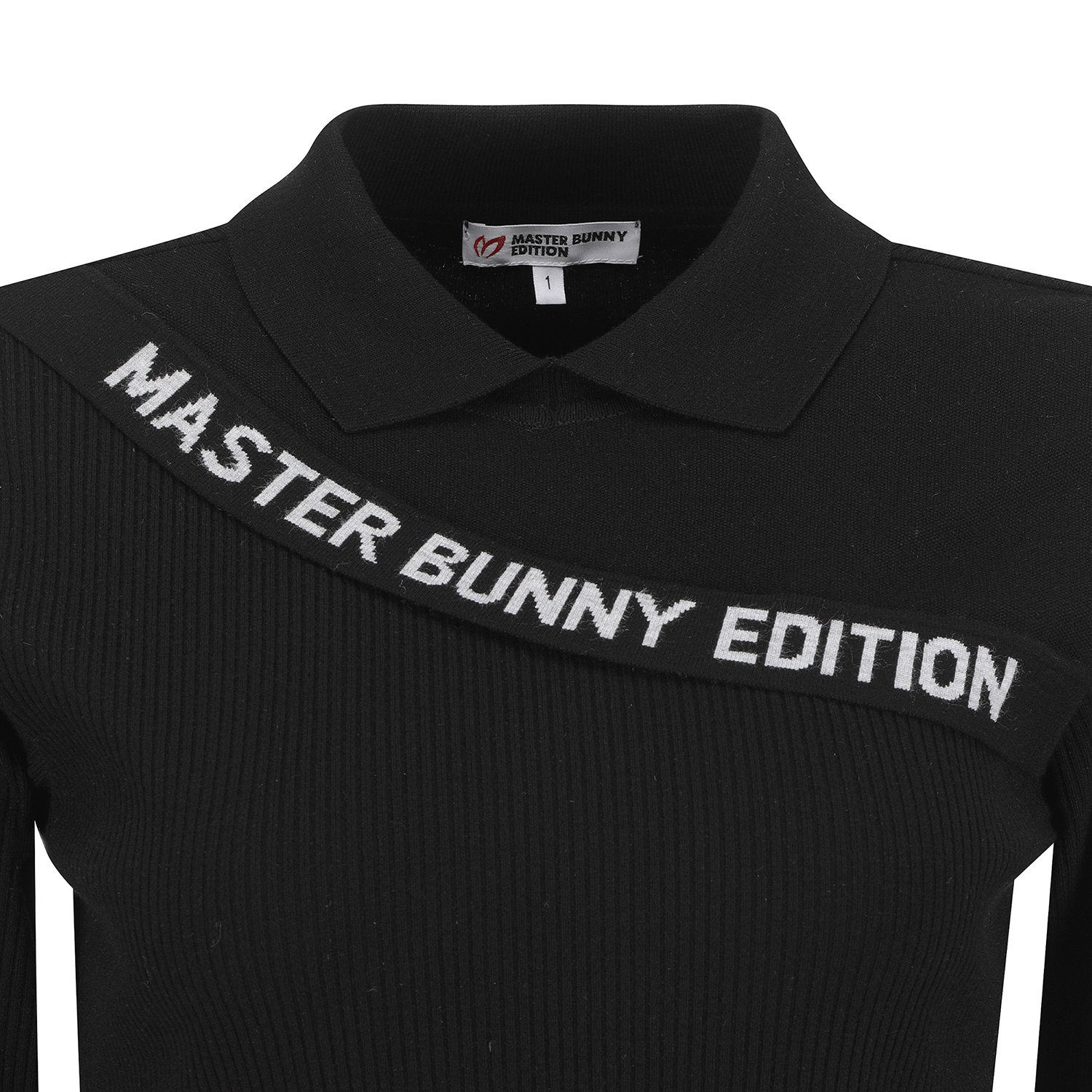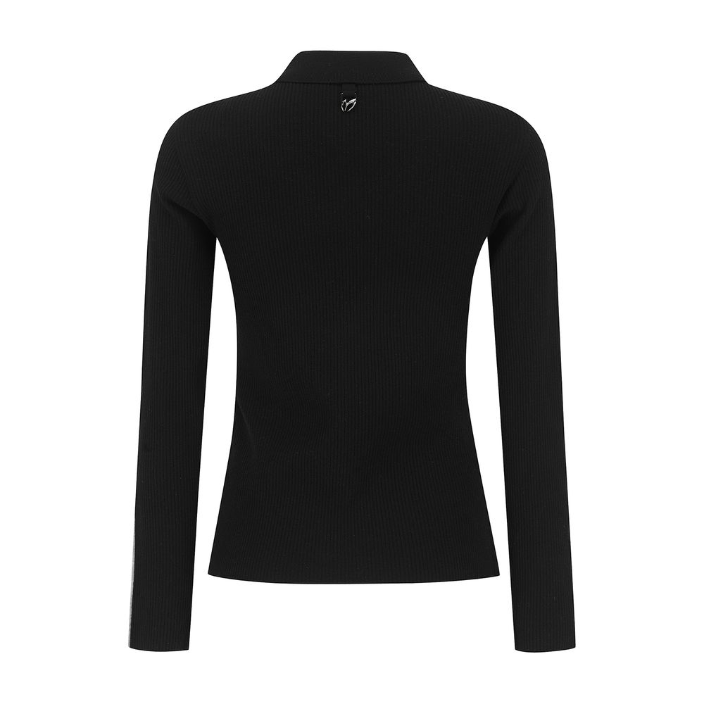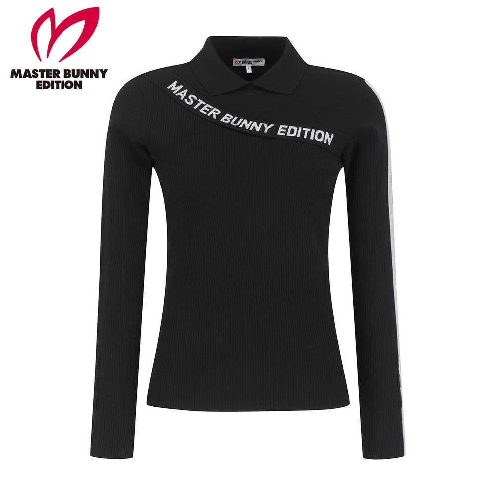 여성 사선 로고 패널 골조직 칼라 니트
