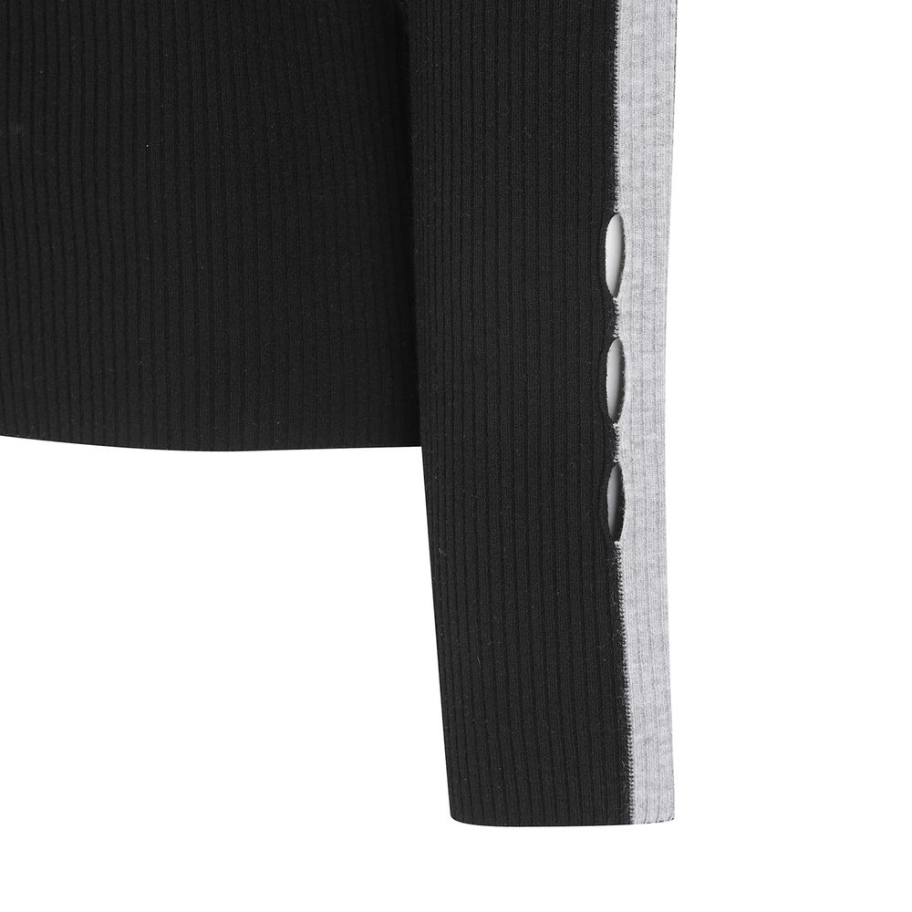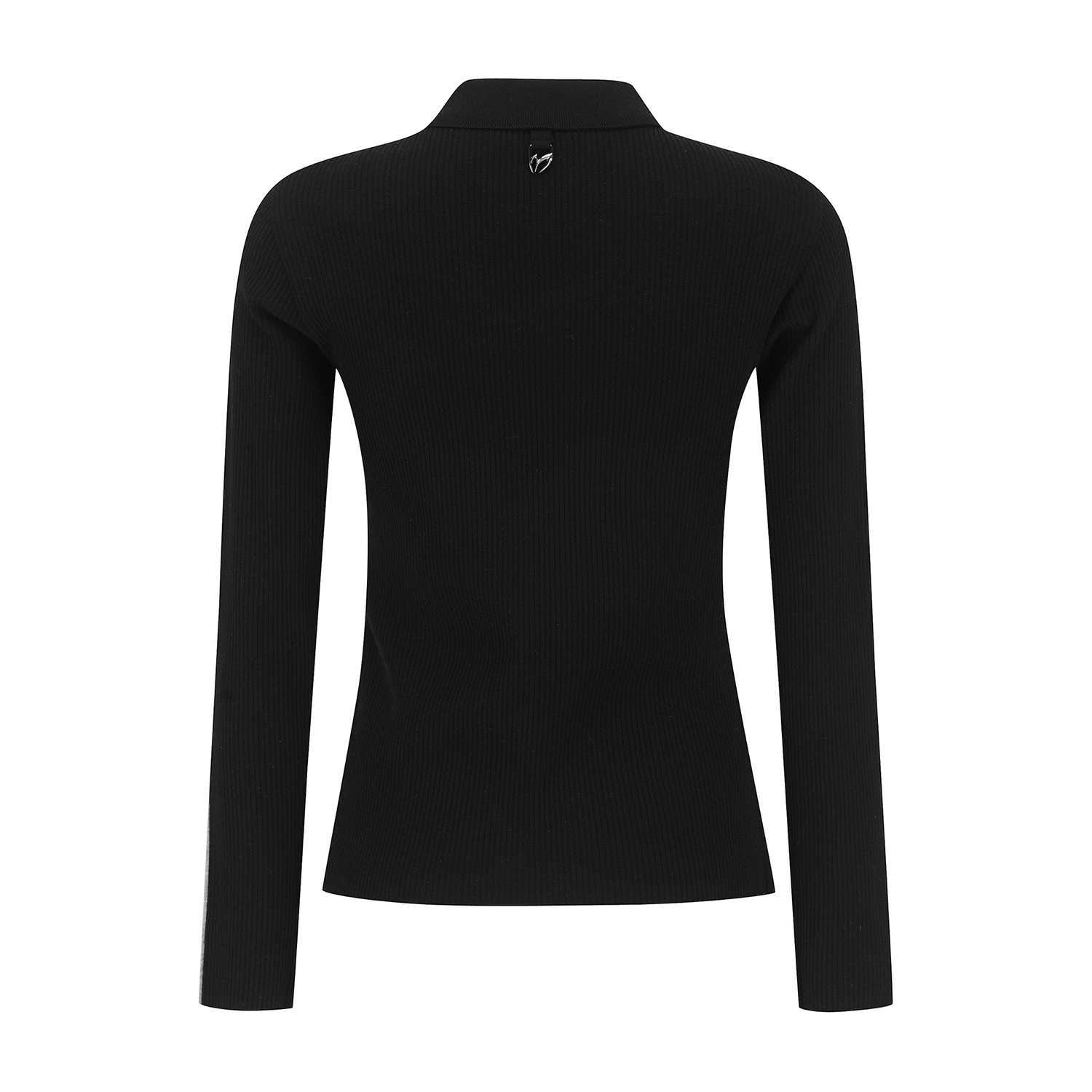 *골지 카라넥 풀오버카라 풀오버로 골조직을 사용하여 신축성이 우수하고 슬림한 실루엣을 연출하며, 가슴 윗부분의 포인트 로고 자카드와소매 부분의 트임이 포인트