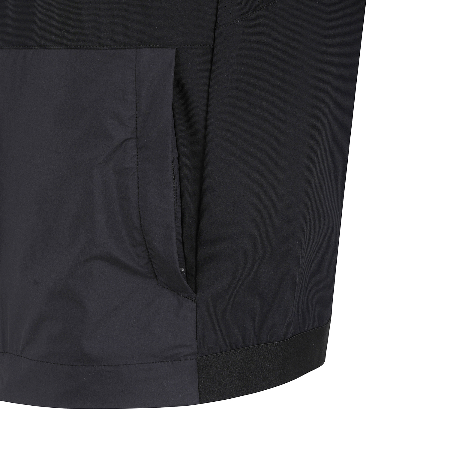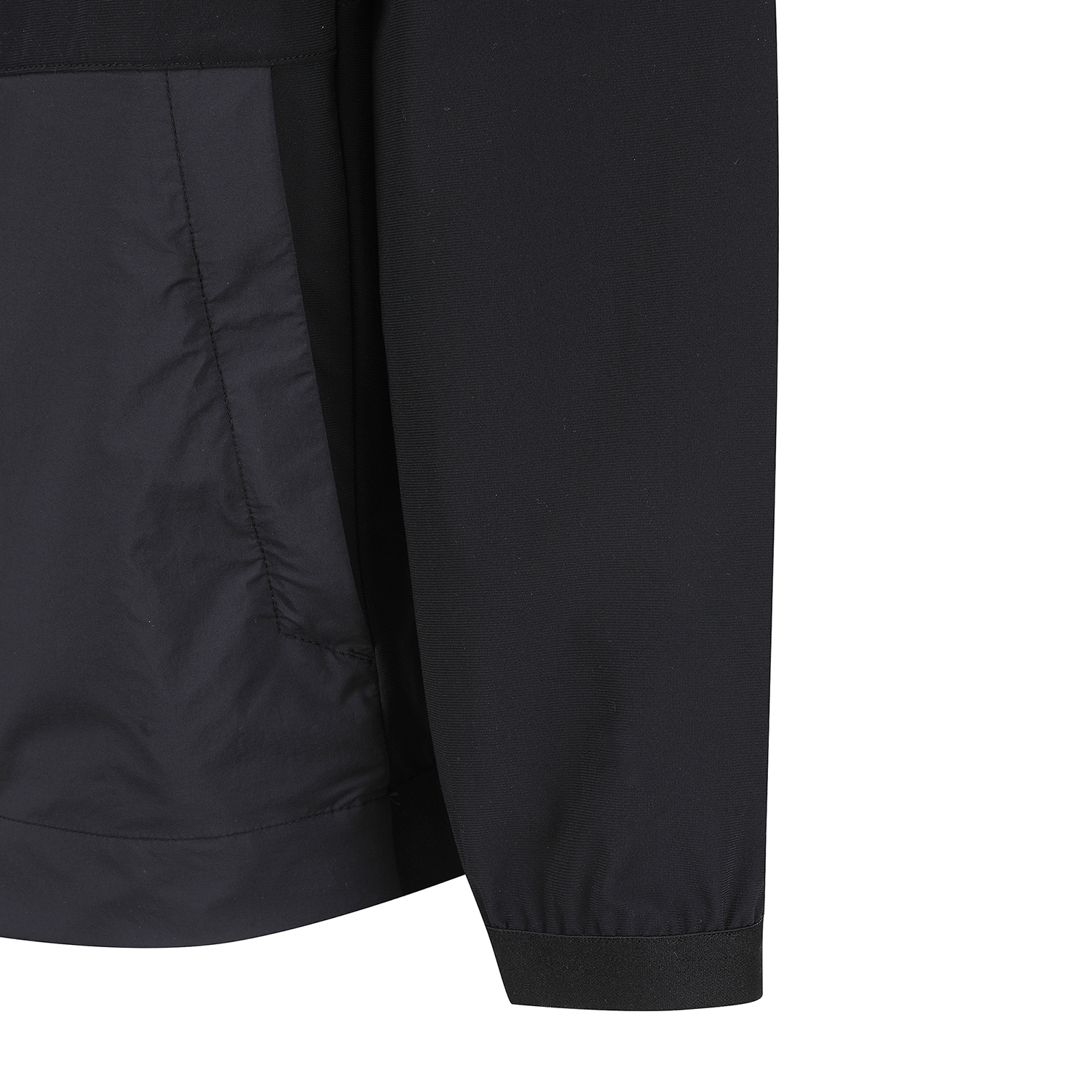 *펀칭믹스 후드내장 져지 점퍼우븐과 트리코트가 믹스된 두잉점퍼.고텐션의 소재로 활동성을 극대화.에리에 지퍼 안쪽에 후드가 내장되어있는 형태