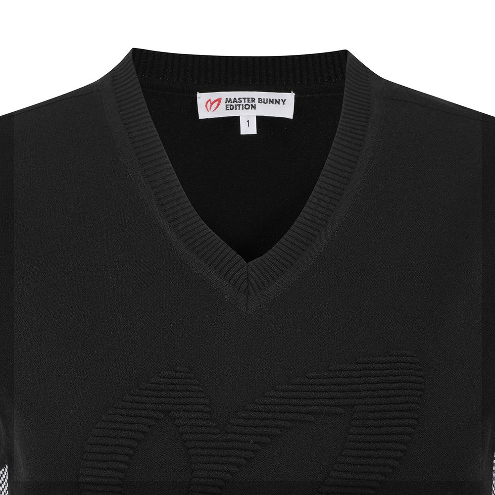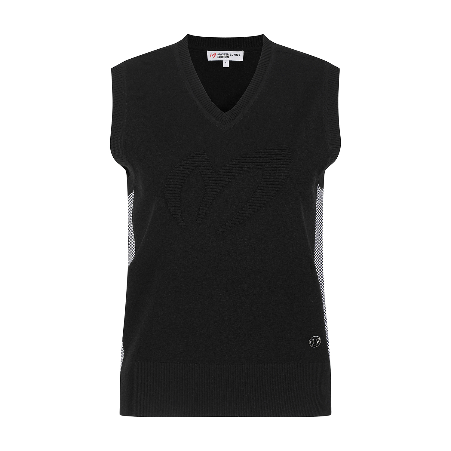 *입체조직 포인트 브이넥 베스트레이온 혼방소재로 경량성이 우수한 기본핏의 V넥 베스트로 앞판의 조직변형의 귀 로고와 와끼의 배색감이 포인트.