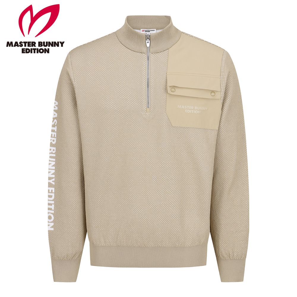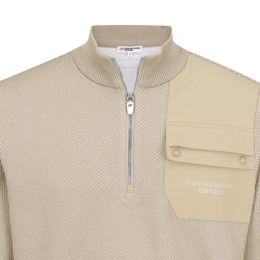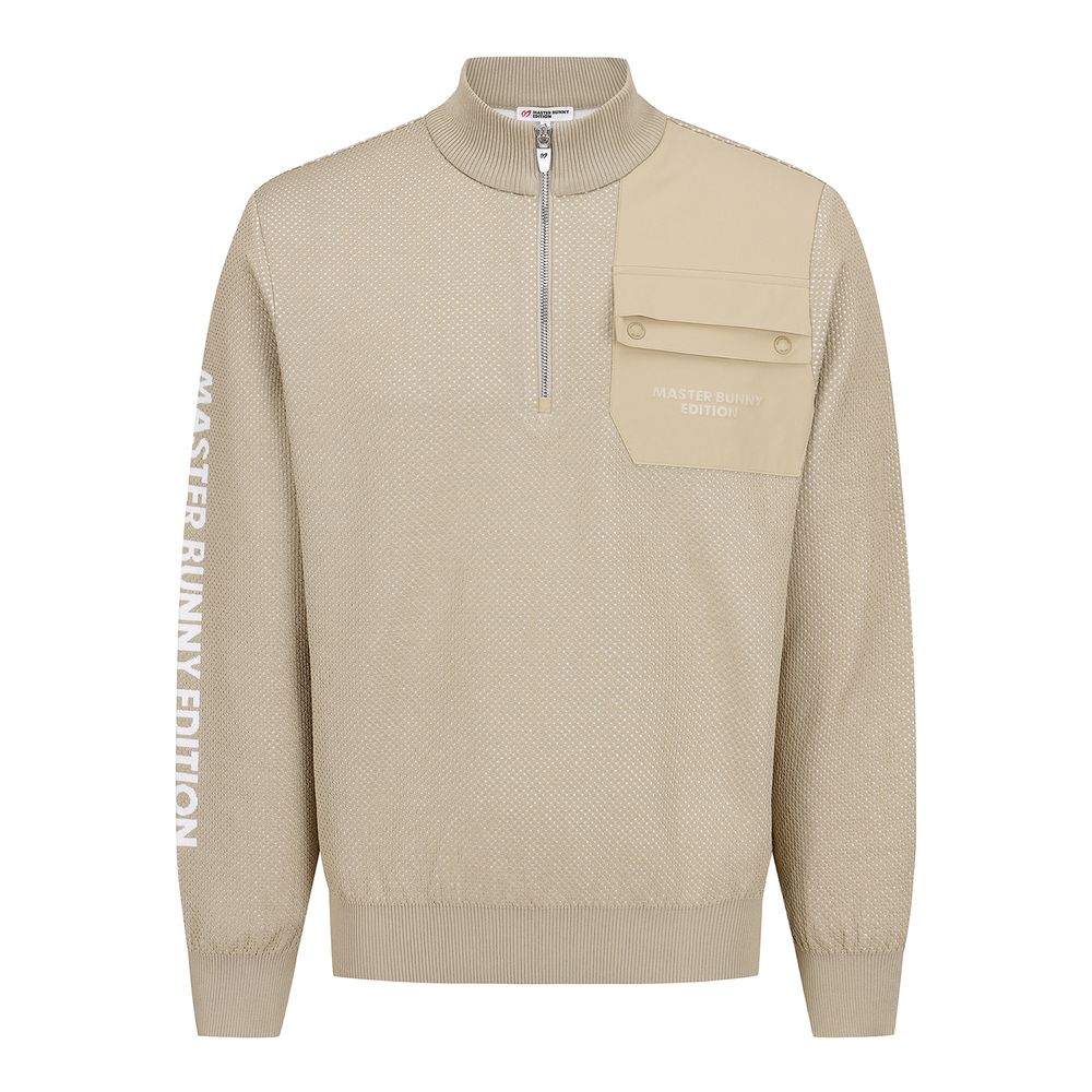 남성 우븐 포켓 메쉬 하프집업 니트