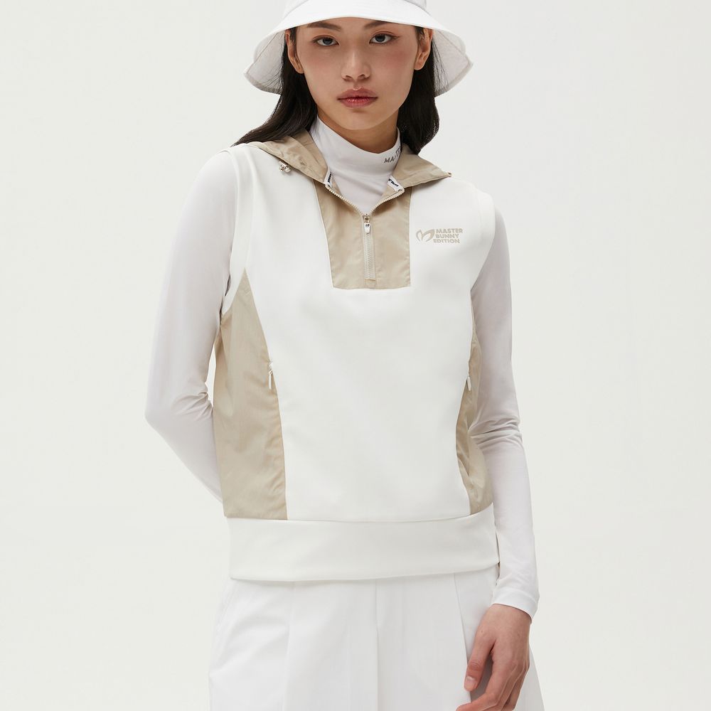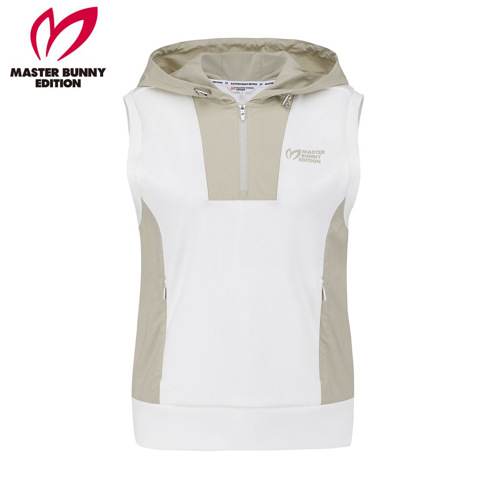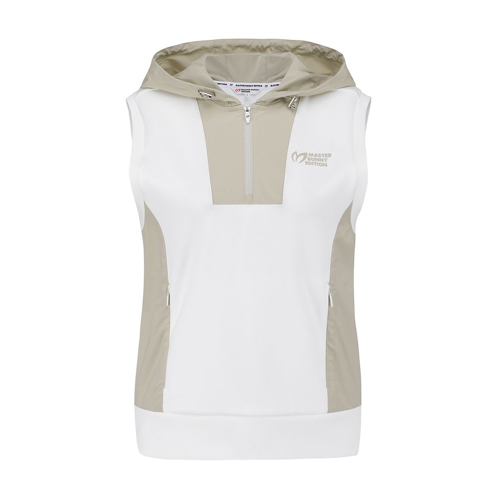 여성 우븐 믹스 후드 슬리브리스 티셔츠