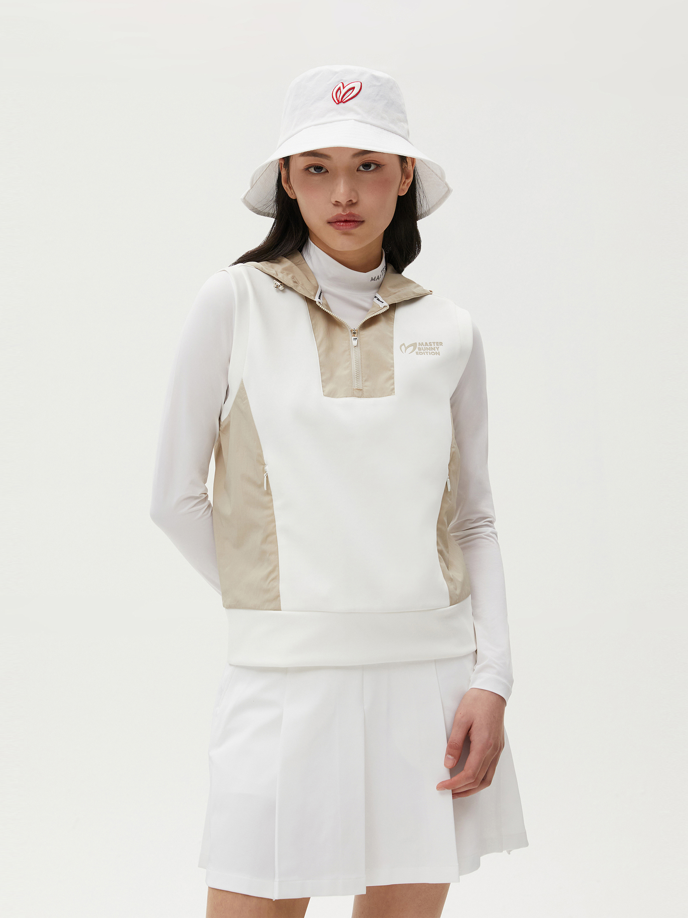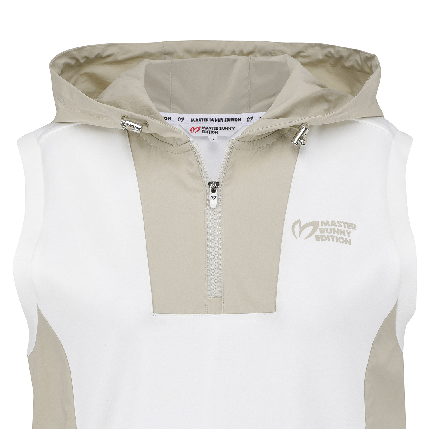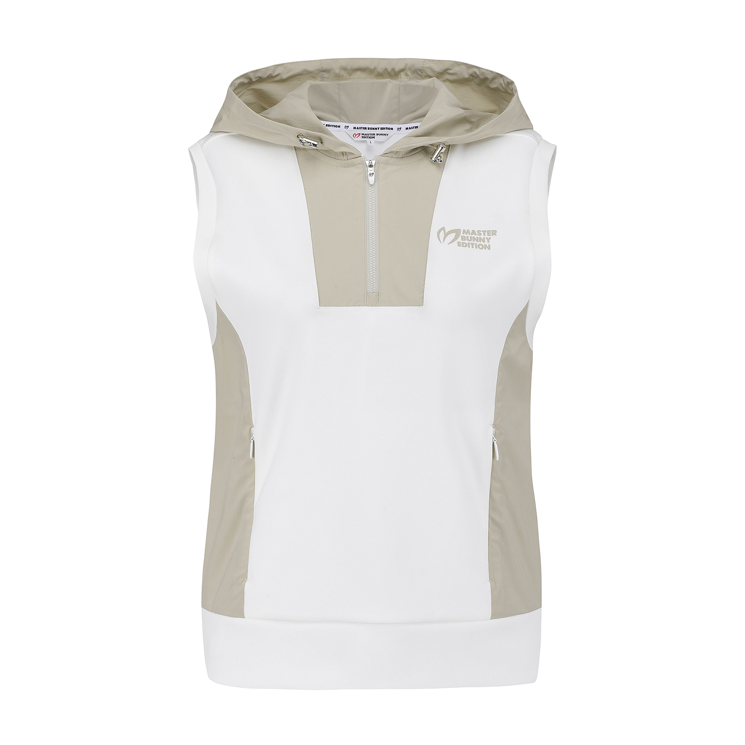 여성 우븐 믹스 후드 슬리브리스 티셔츠