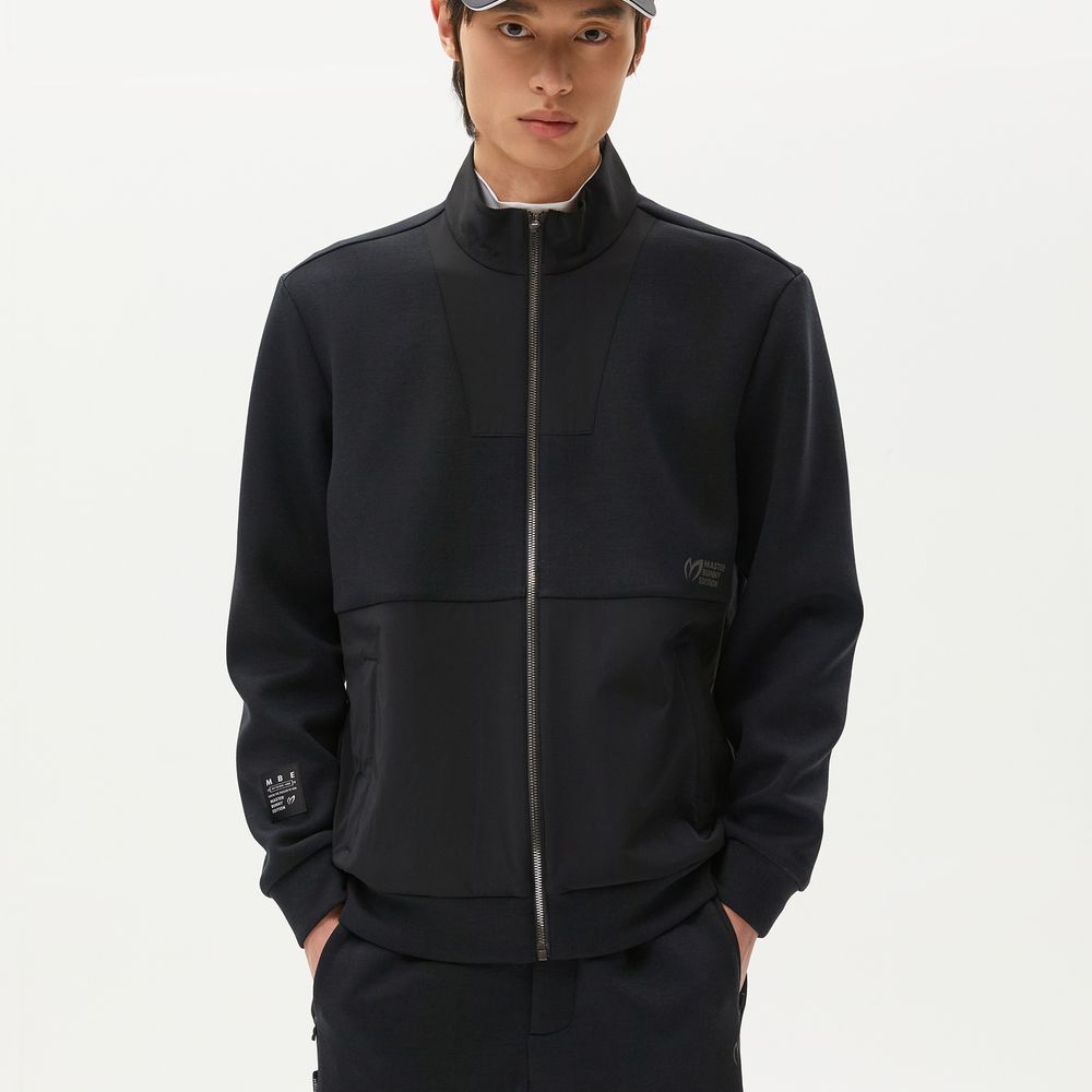남성 백 엠보 로고 우븐 블록 점퍼
