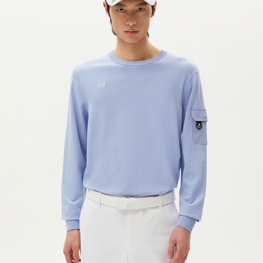 남성 우븐포켓 솔리드 라운드 스웨터