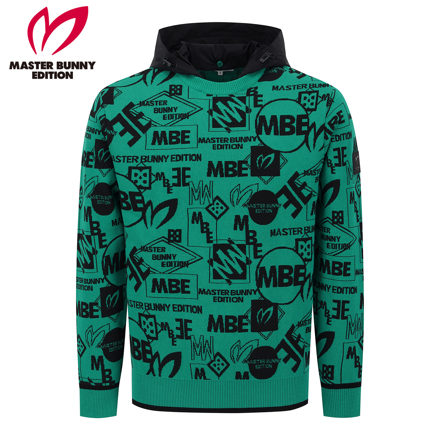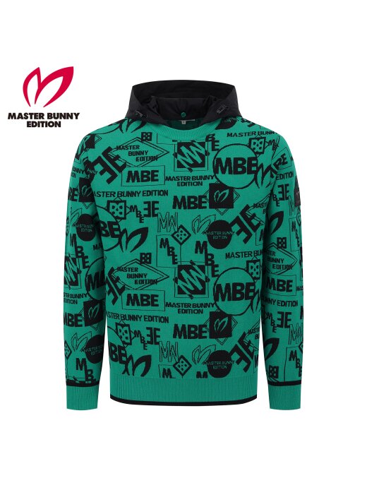 남성 탈착 후드 로고 자카드 긴팔 니트