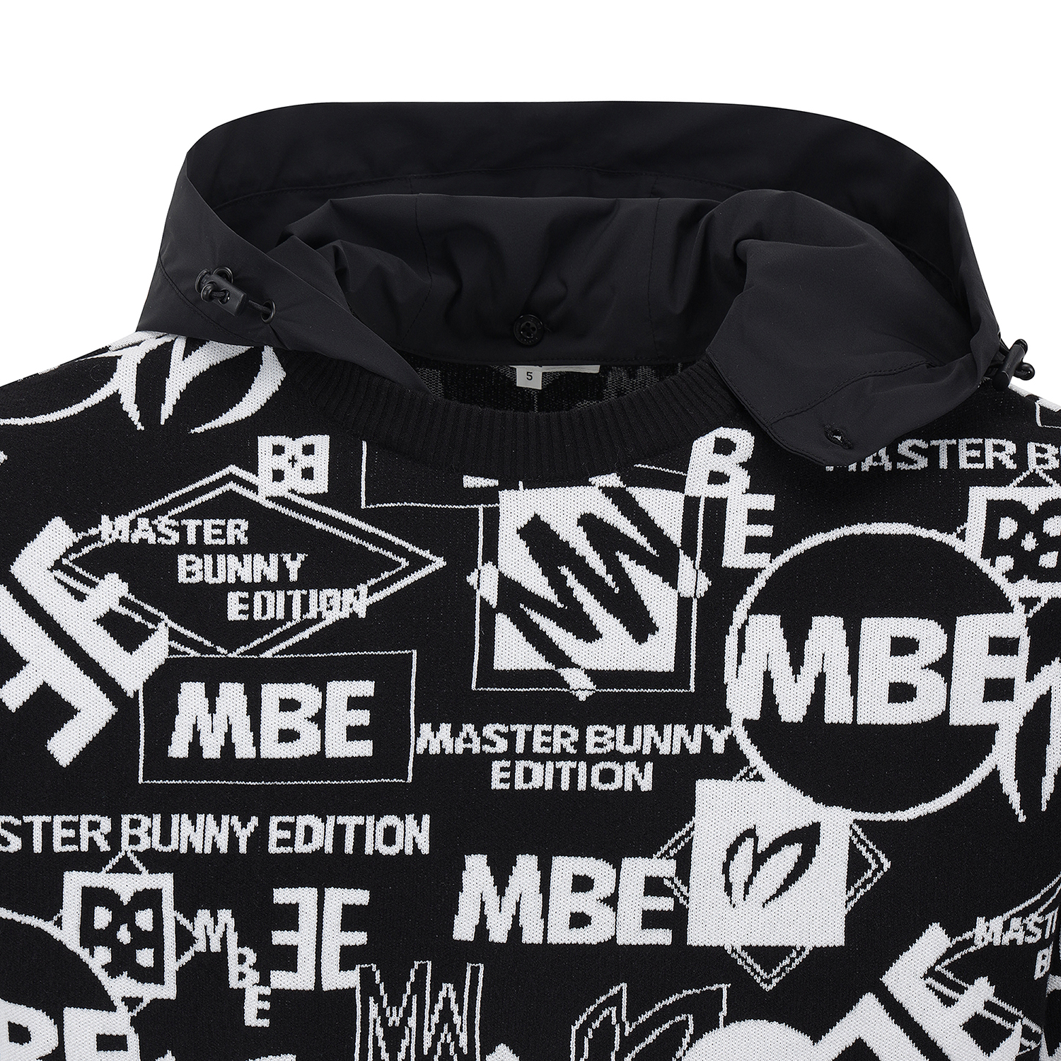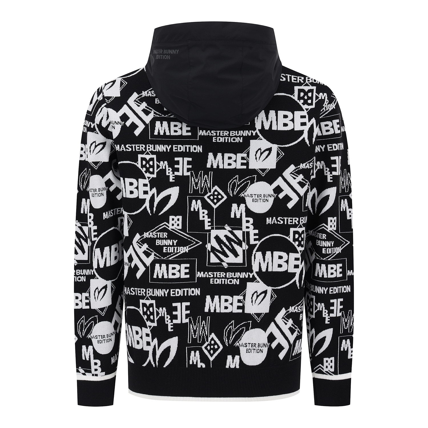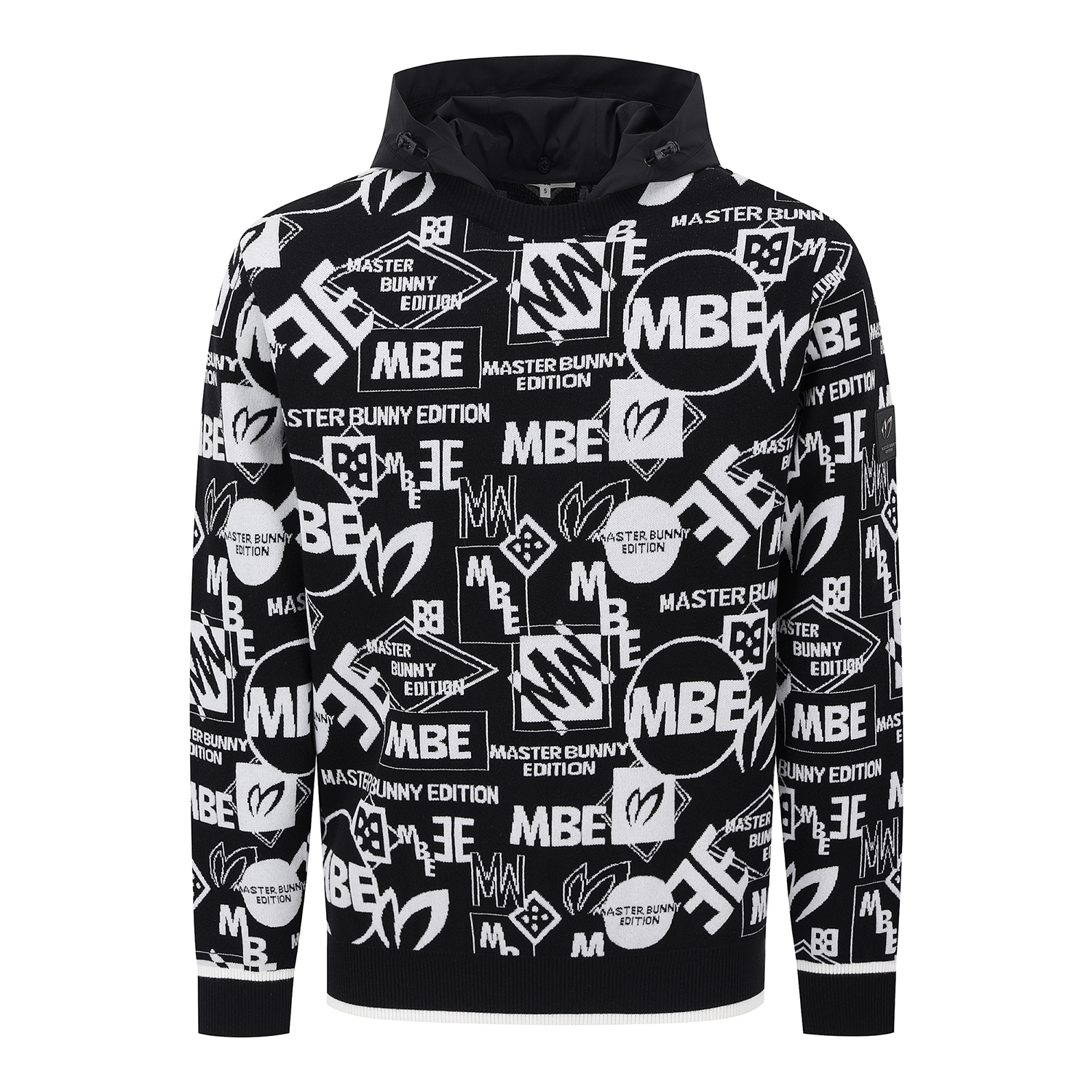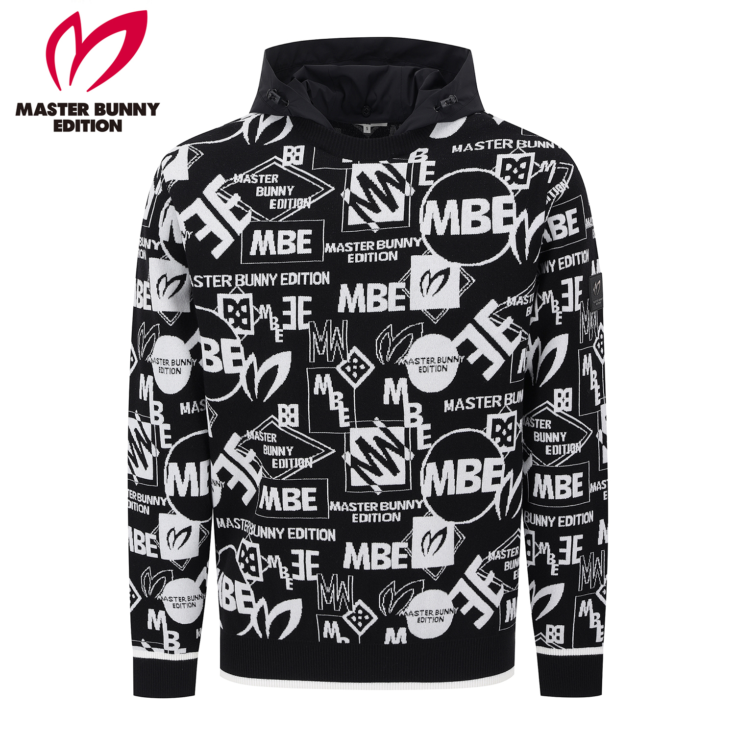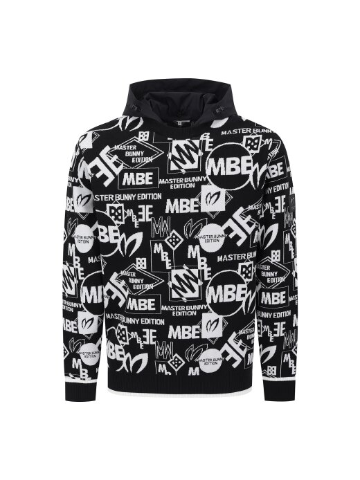 남성 탈착 후드 로고 자카드 긴팔 니트