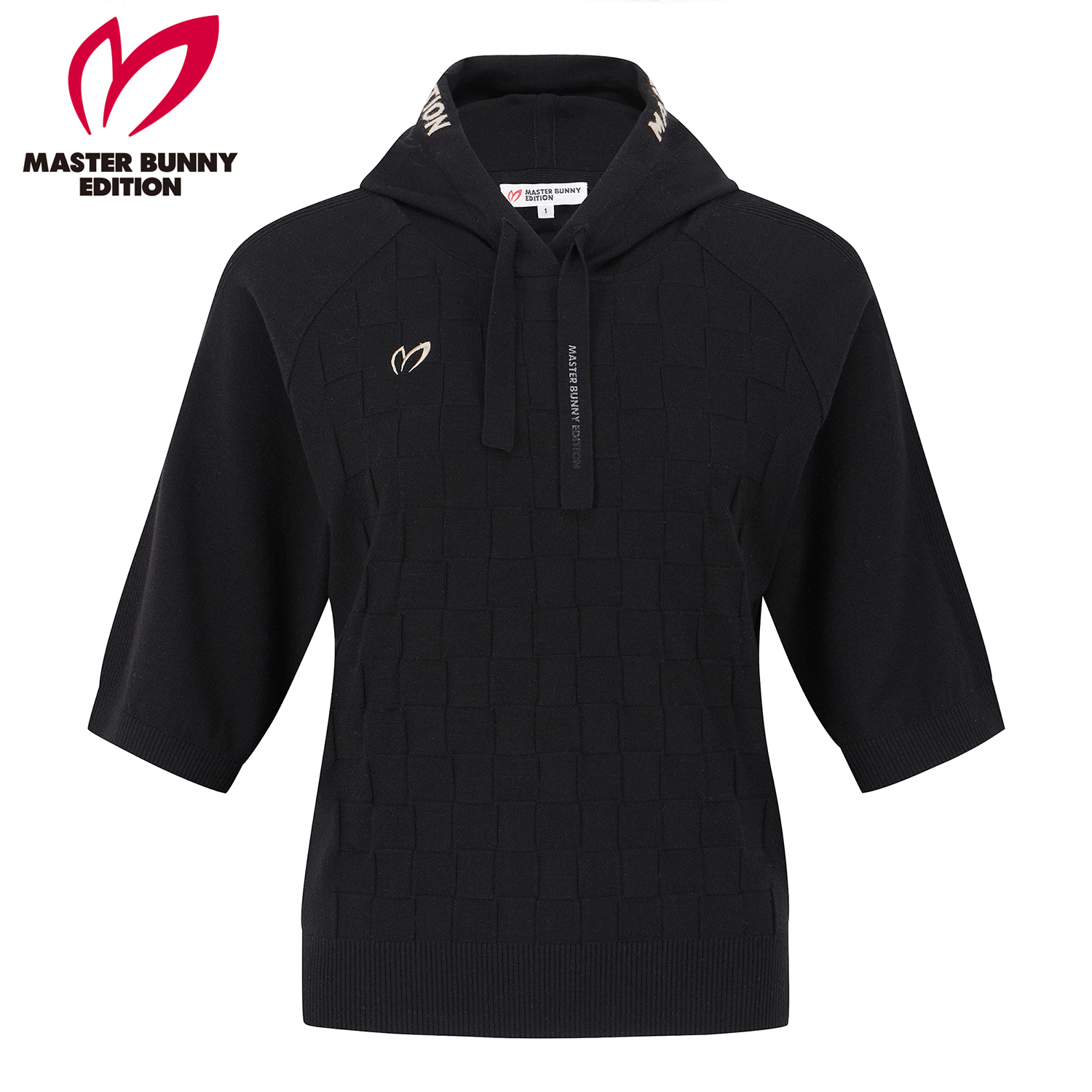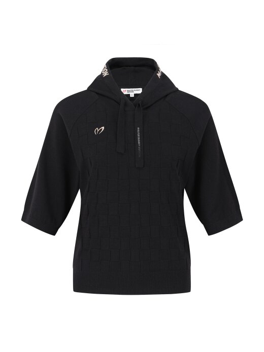여성 체커보드 후드 반팔 니트