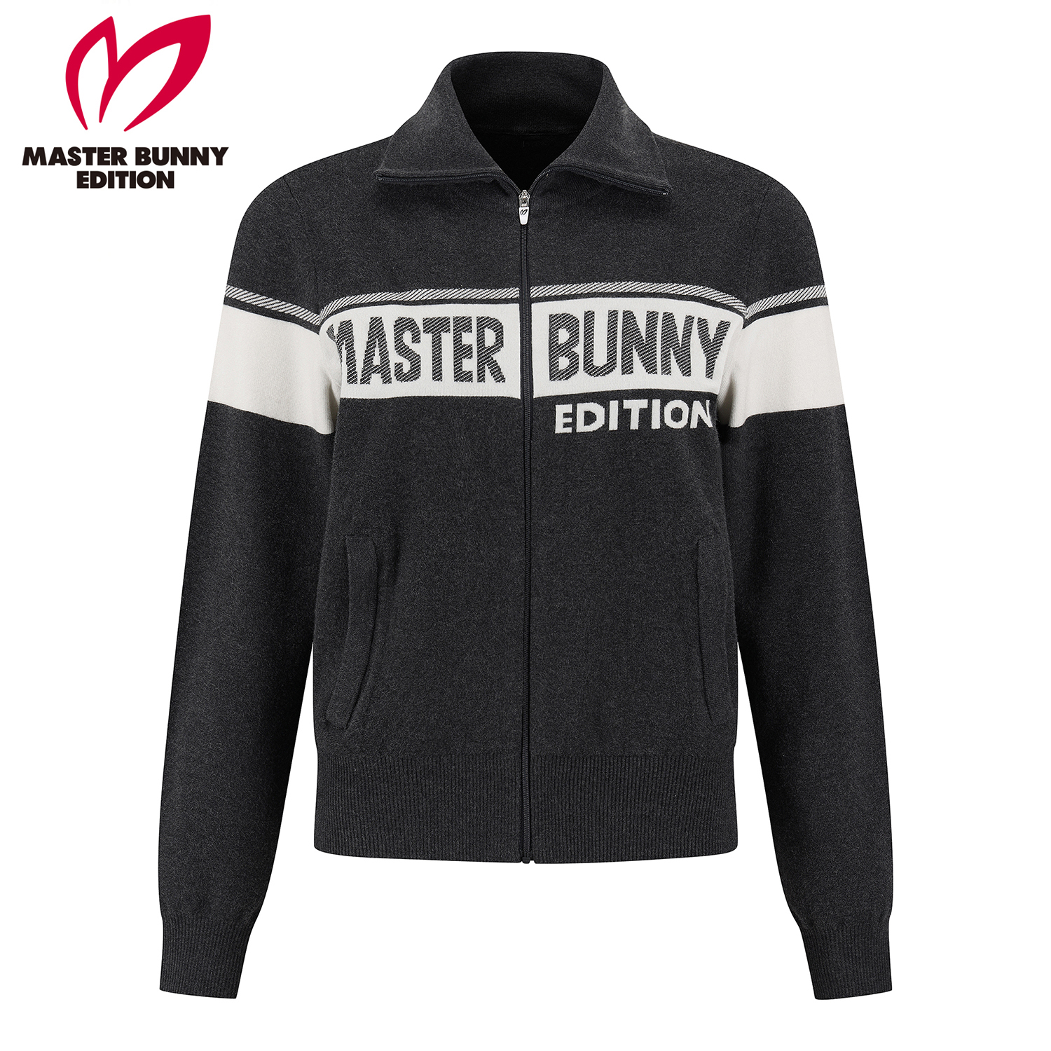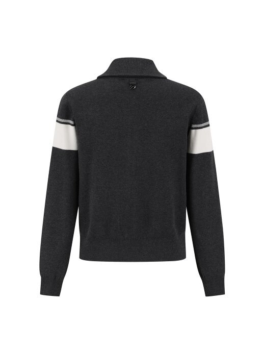 여성 배색 로고 하이넥 집업 가디건