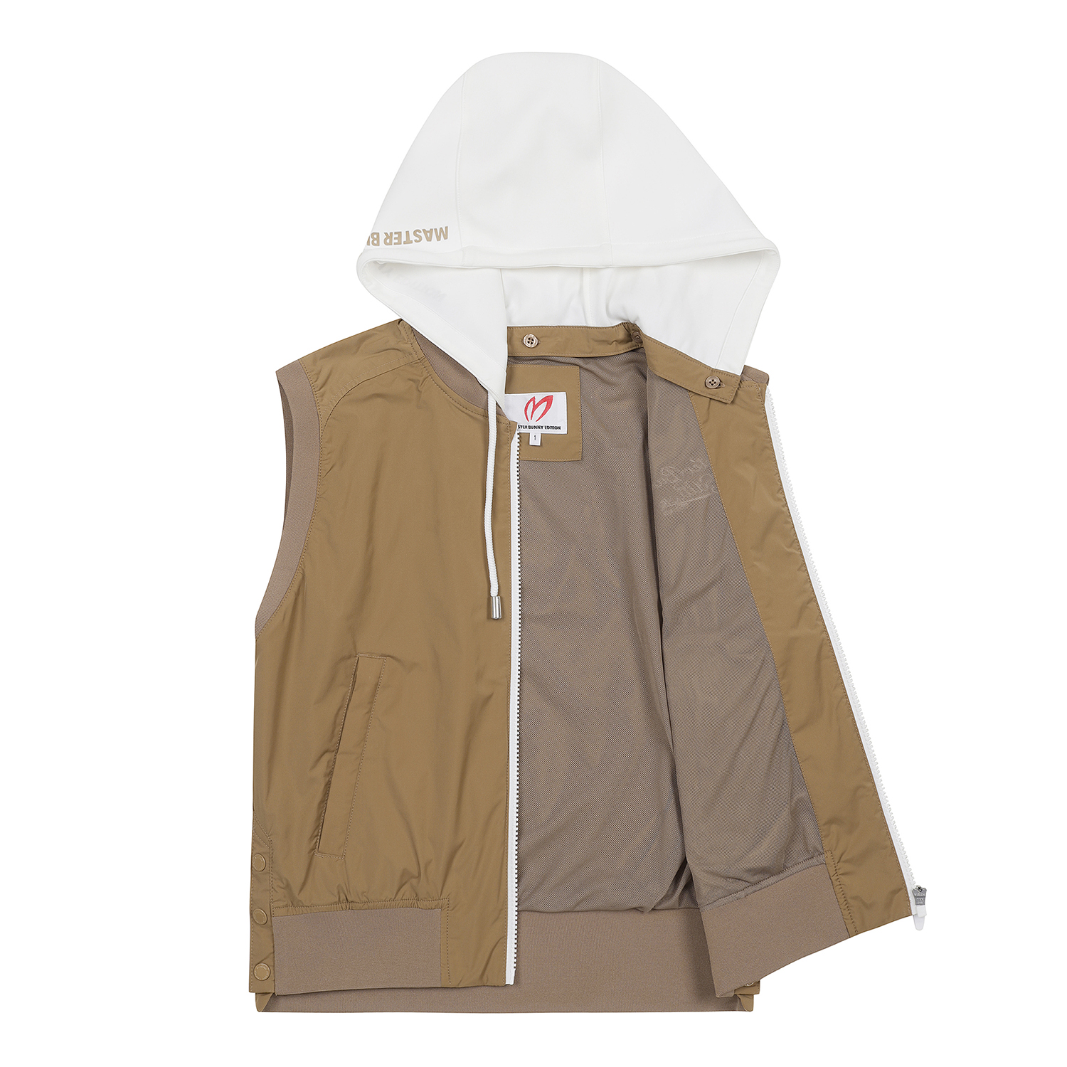 레이어링 해 입기 좋은 후드 집업 베스트.가볍고 통기성이 좋은 소재를 사용.아래 밴딩이 허리핏을 잡아줍니다.