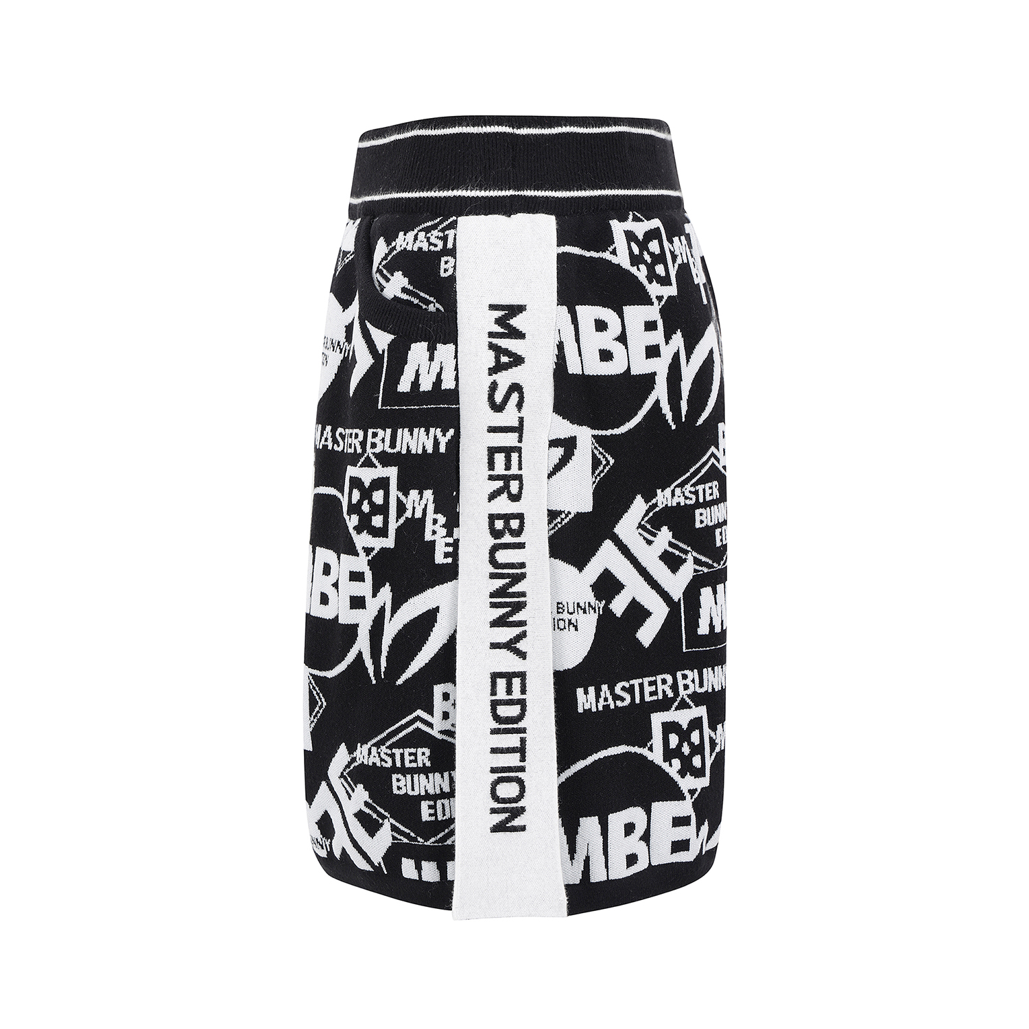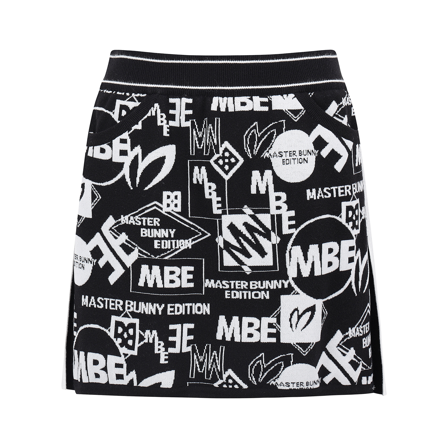 여성 배색 로고 패턴 니트 큐롯 스커트