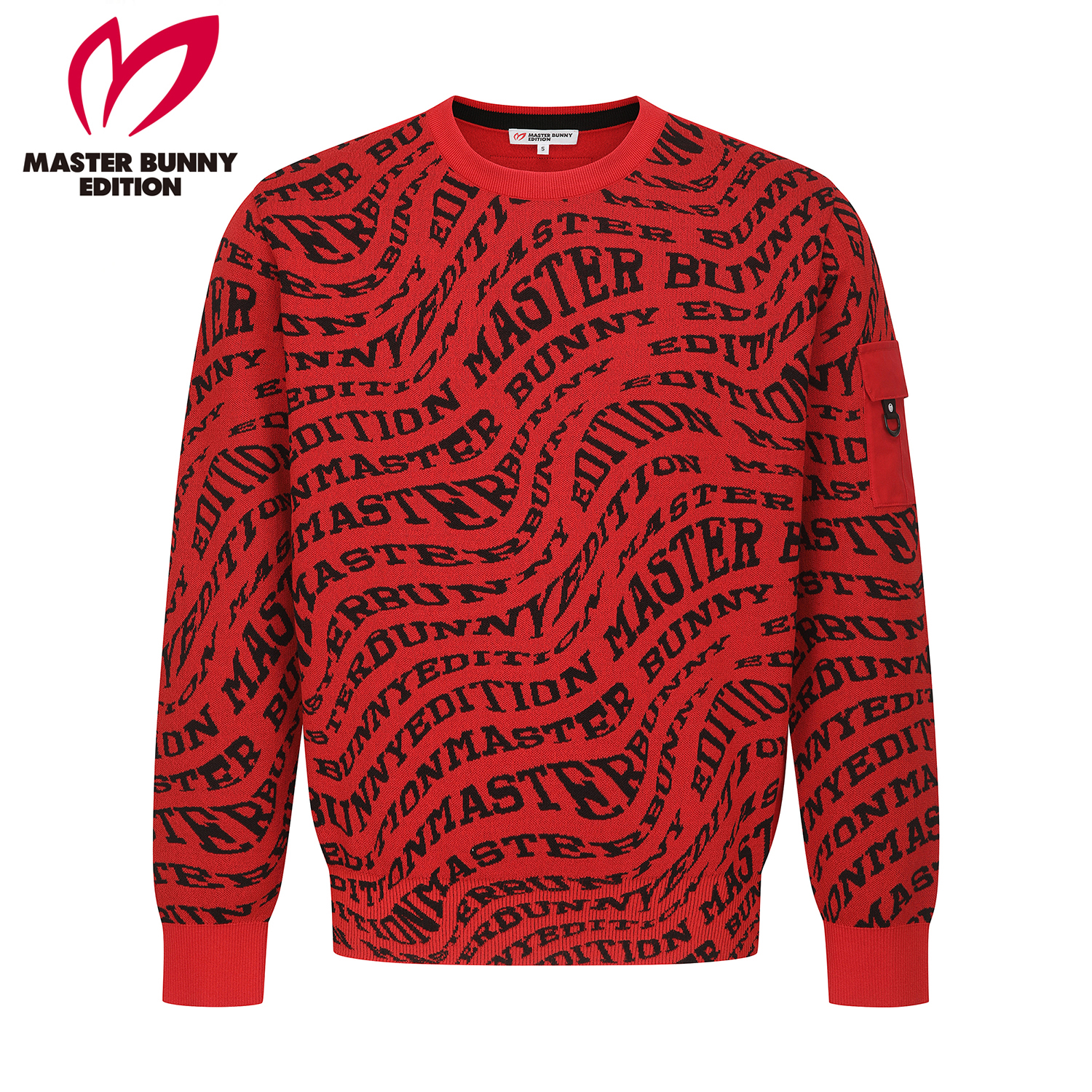남성 웨이브 레터링 자카드 라운드넥 니트