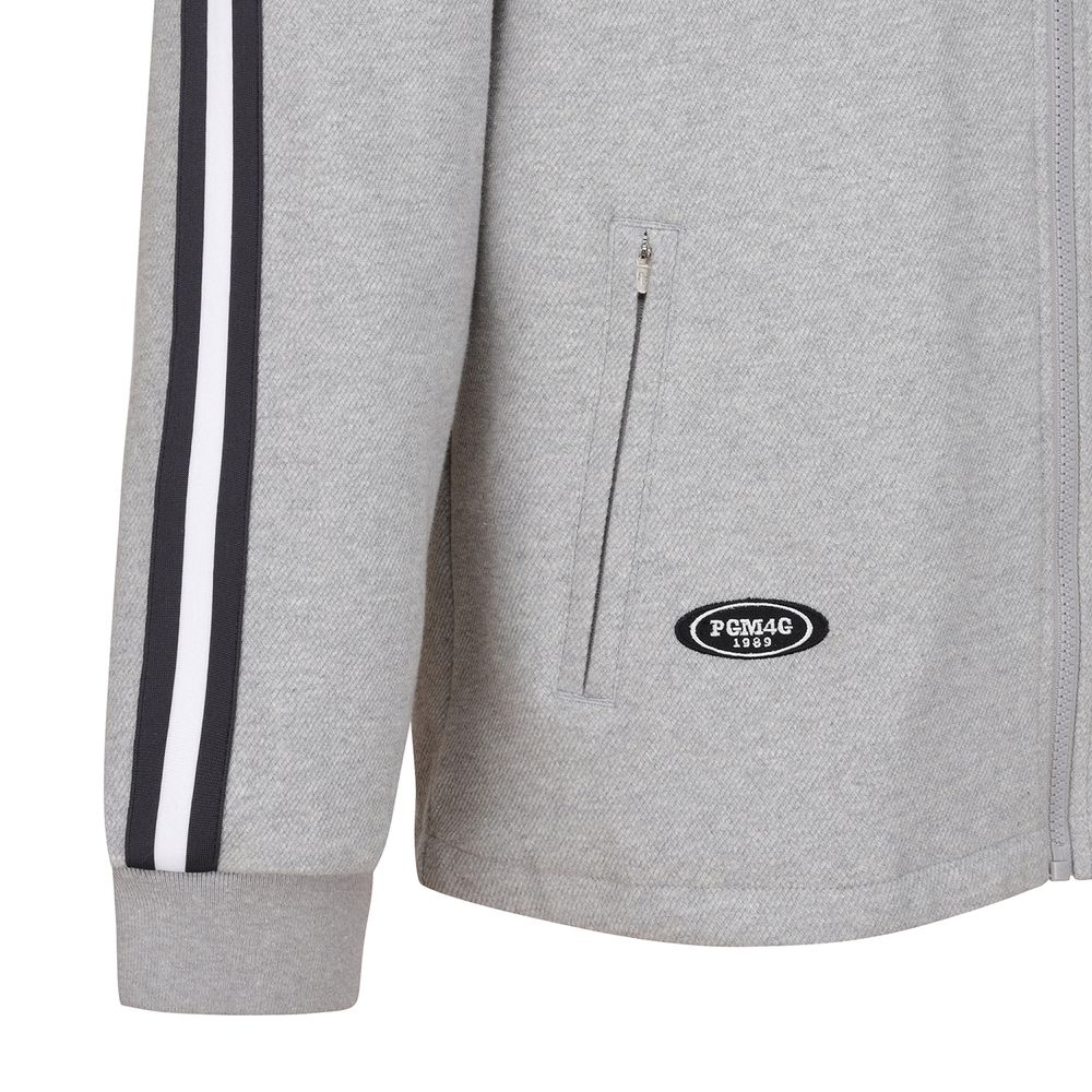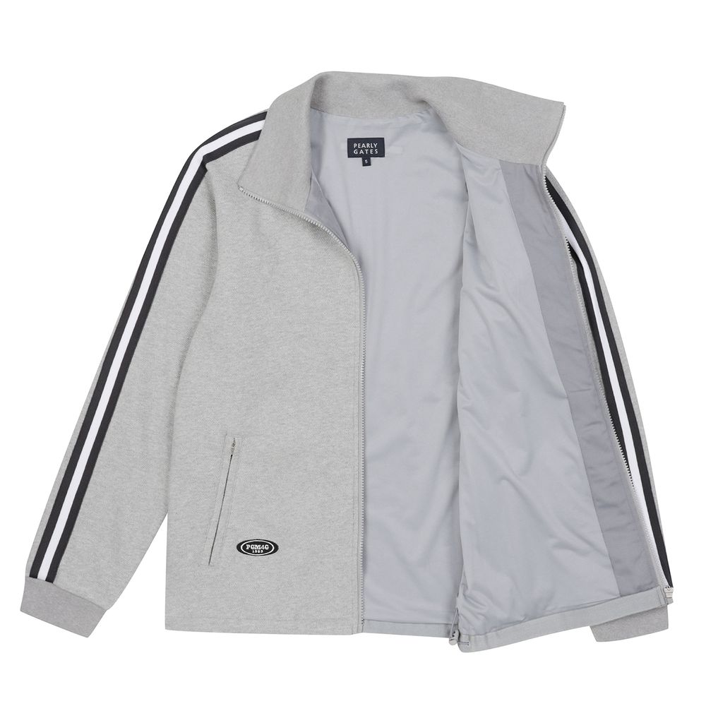 조직감있는 면 소재에 배색 테이프 디테일로 포인트를 준 트레이닝 집업으로 일상생활에도 편안하게 착용 가능한 제품. *511C3PF308 SET.