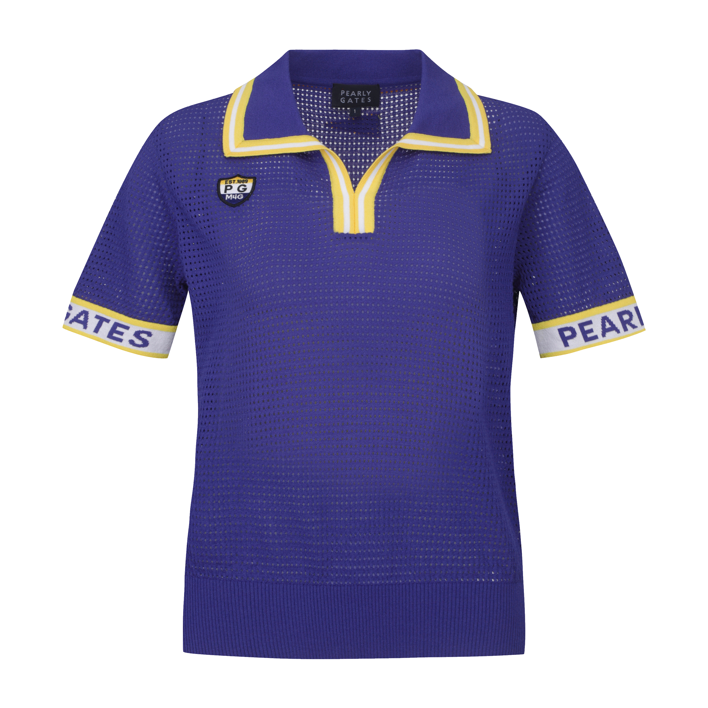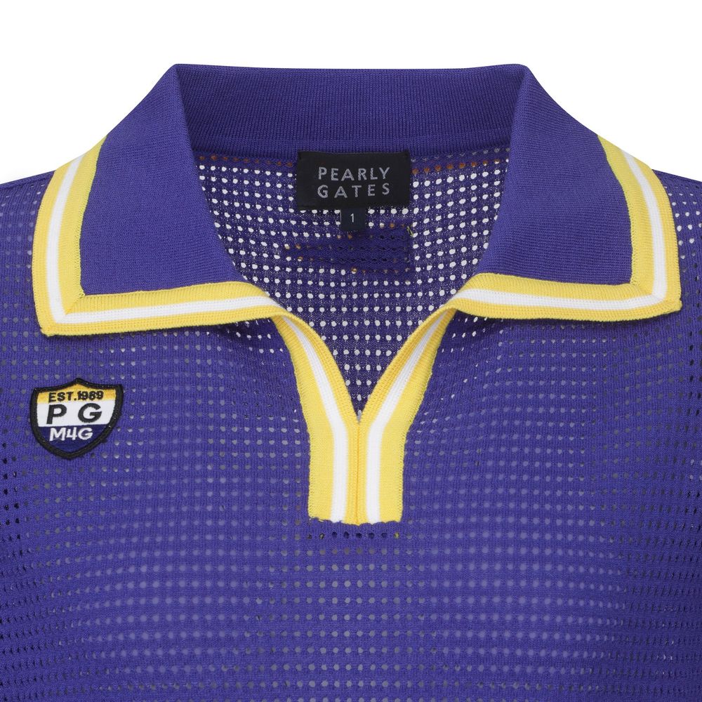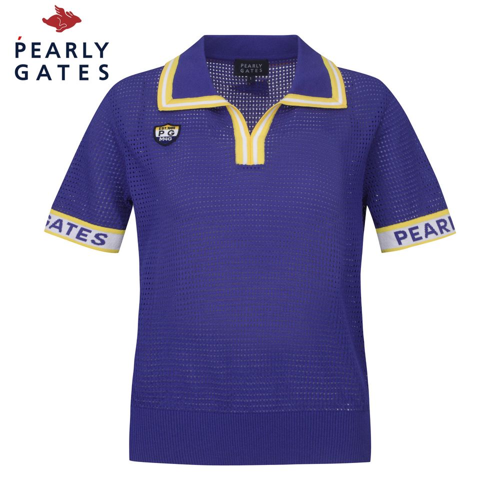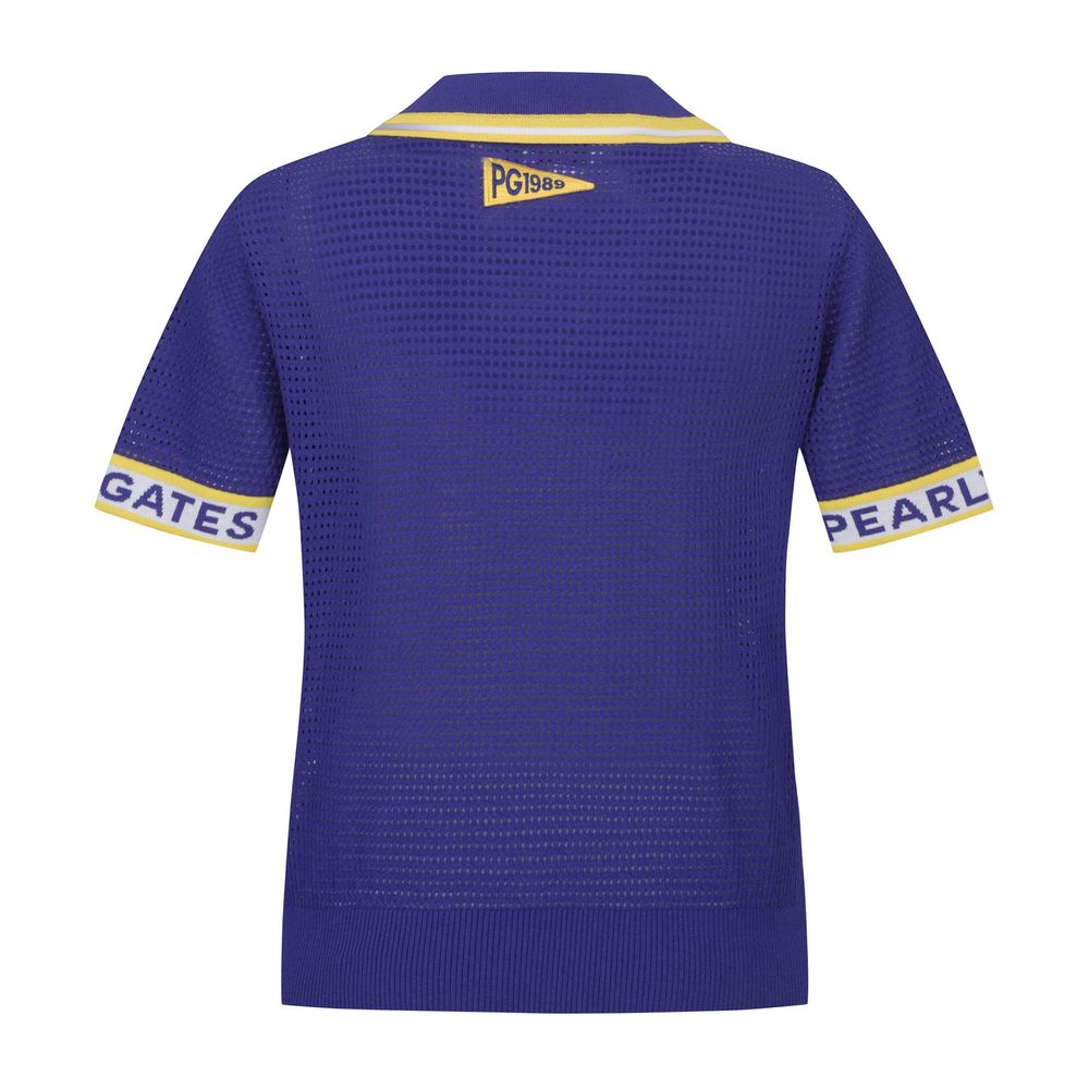 여성 로고 커프스 오픈 칼라 펀칭 니트
